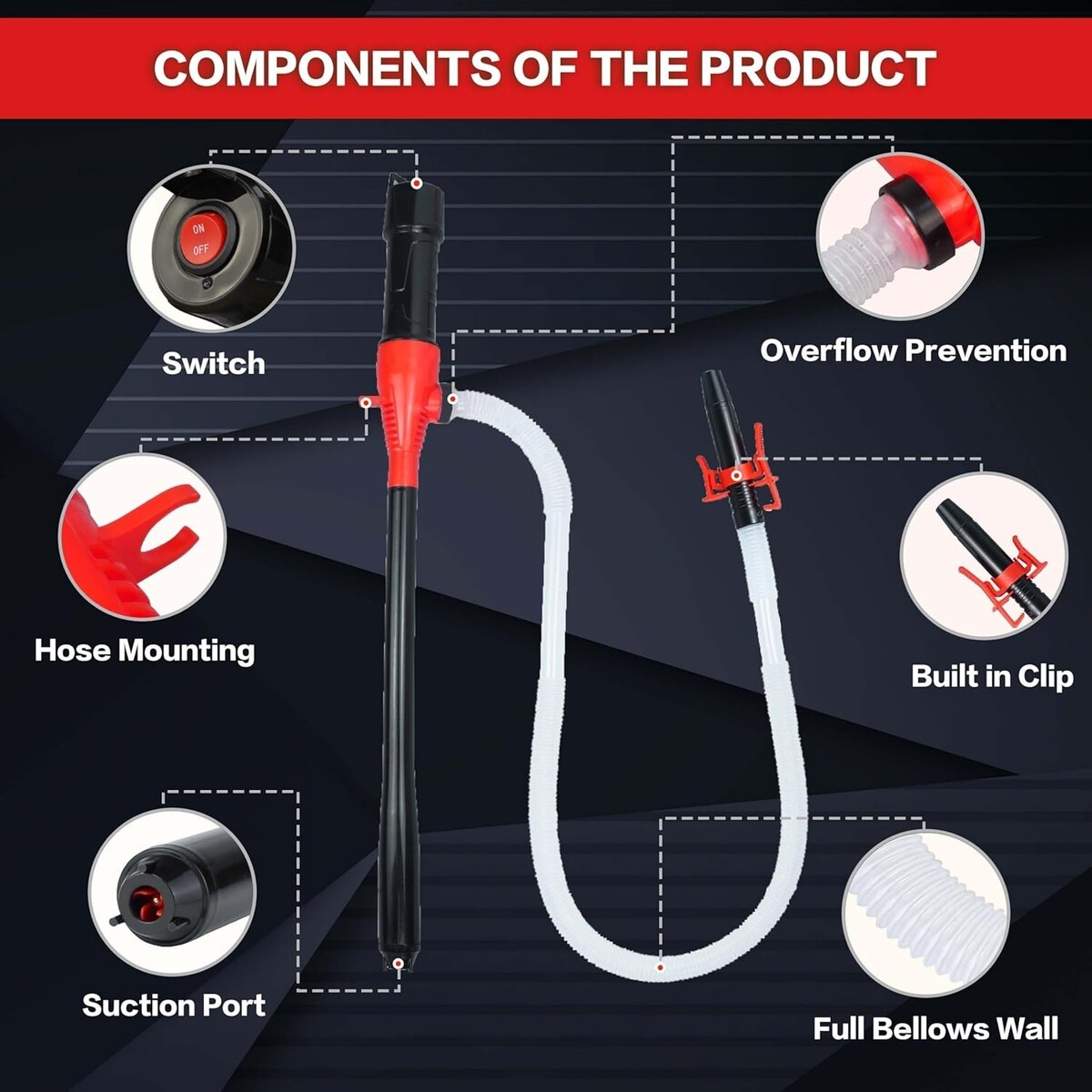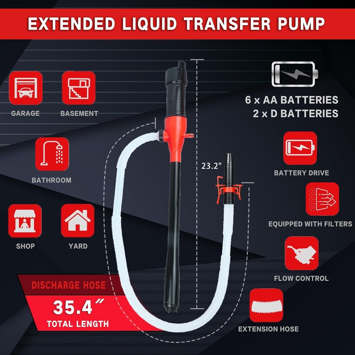 EASY TO OPERATE: The pump is battery-powered, ensuring safe and easy transfer of liquids. Its 16-inch tubing is suitable for 3- to 5-gallon volumes, with a 3-foot-long hose and 1-inch-diameter suction tube