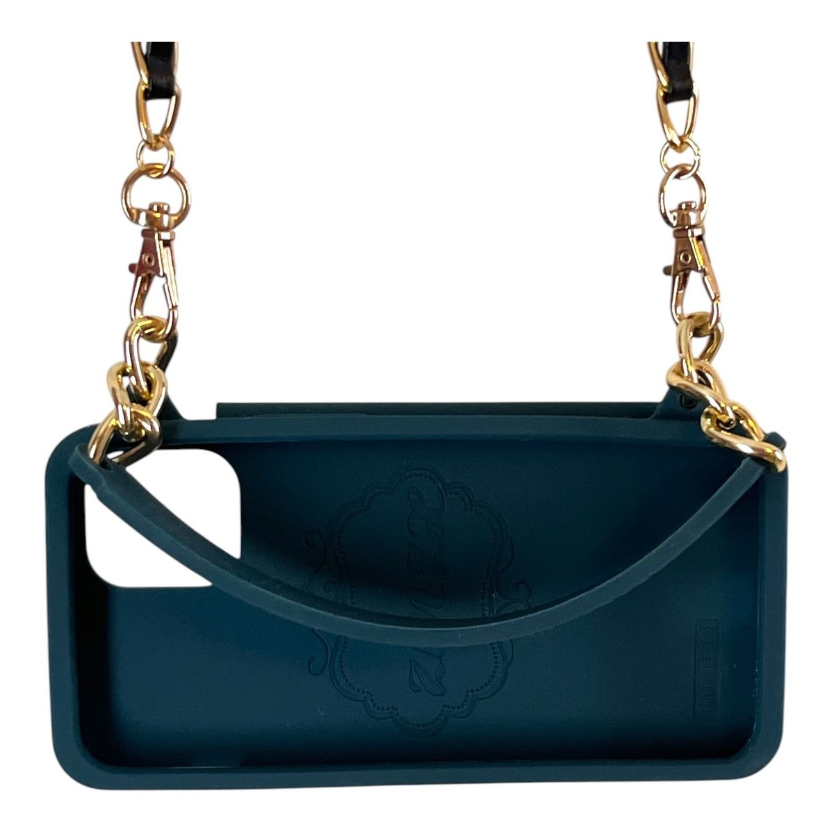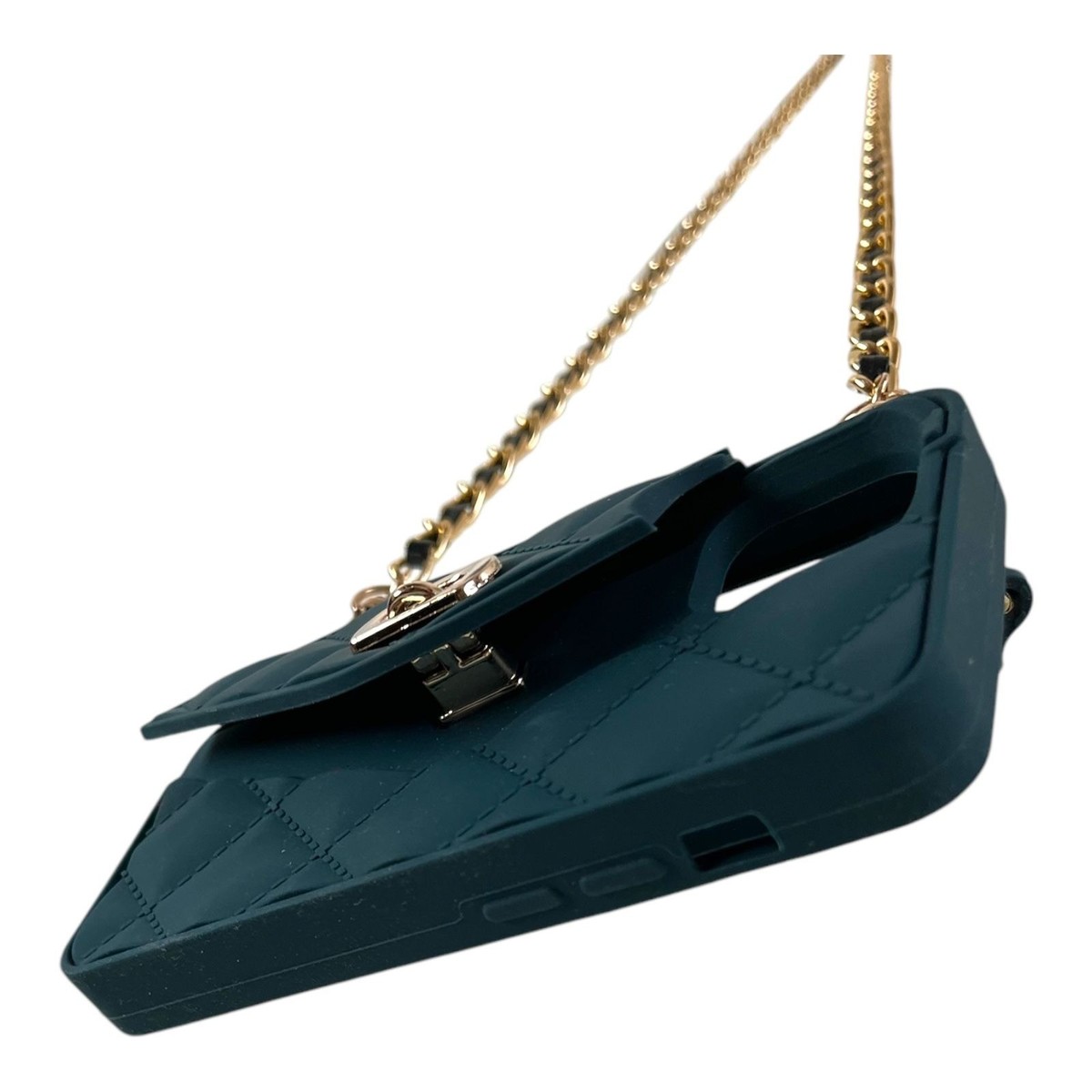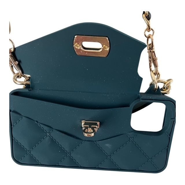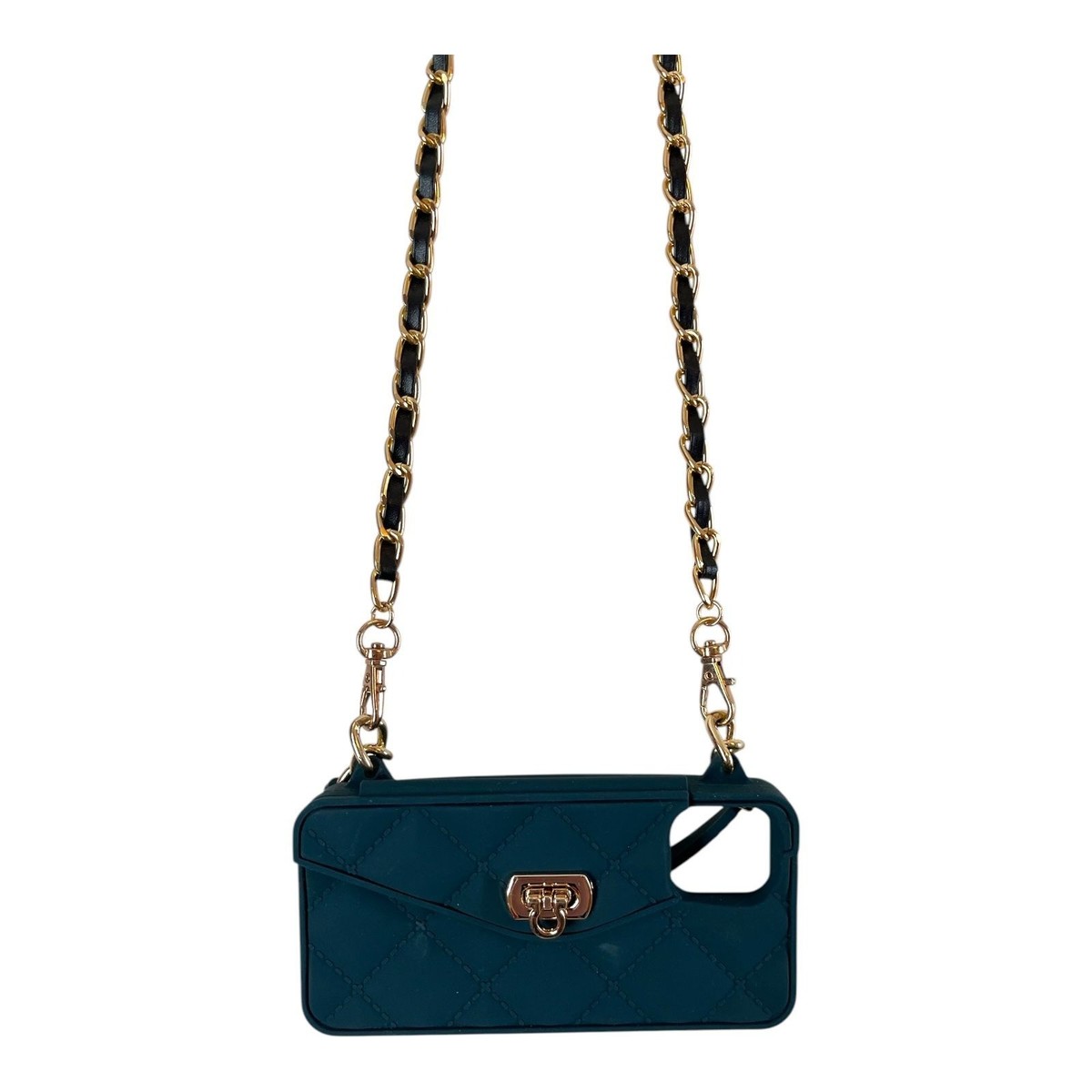 Quilted Silicone iPhone Crossbody Phone Purse Teal Gold Chain Case