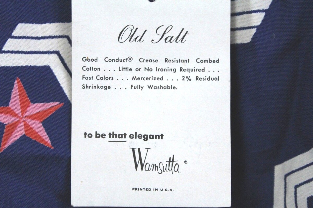 Wamsutta was an American textile powerhouse from the late 19th century onward, renowned for durable cottons. Their mid-century sportswear lines combined practical fabrics with fun prints, making them a favorite for leisure and beachwear in the 1950s. Surviving deadstock examples are rare and highly collectible.