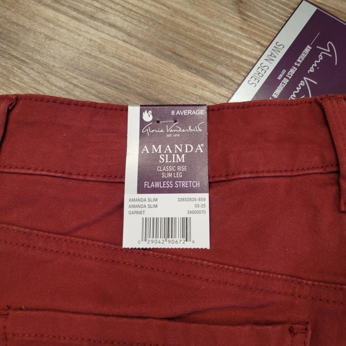 Gloria Vanderbilt Jeans Womens 8 Red Garnet Amanda Swan Series Soft Touch Denim