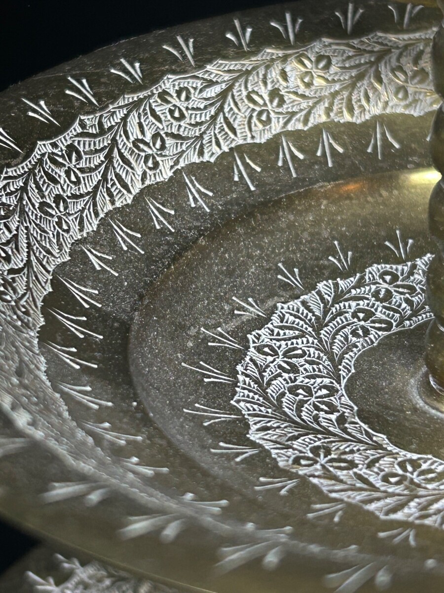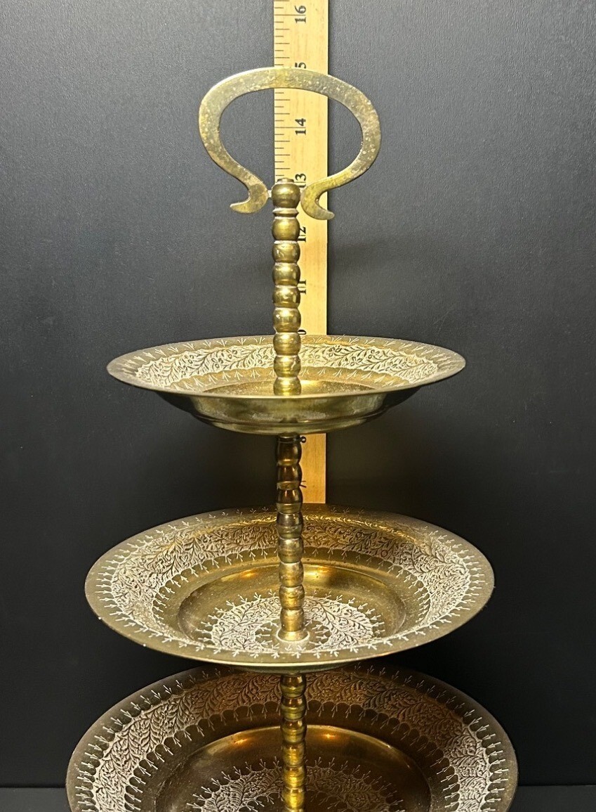 3-Tier Hand-Etched Solid Brass Round Serving Dish Vintage India for Candy Fruit