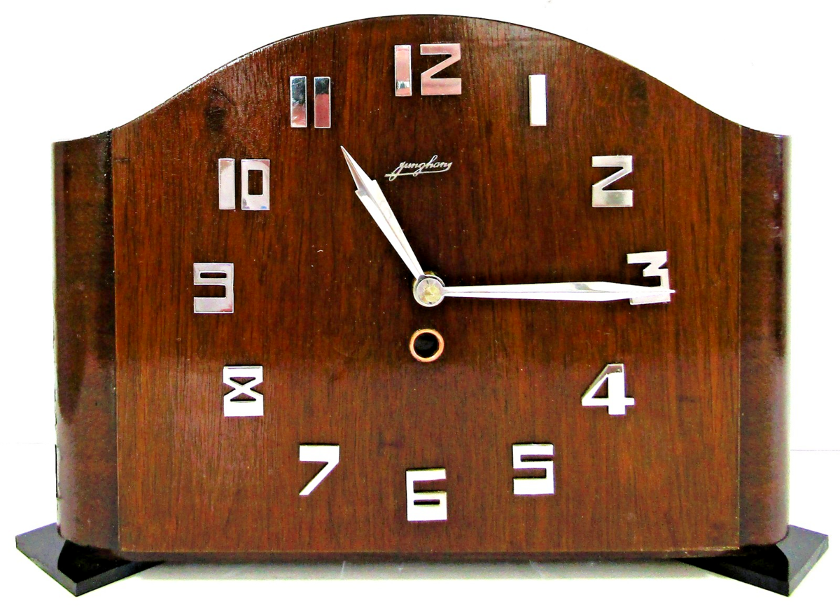 Junghans Art Deco 1930s Walnut and Chrome Shelf Clock