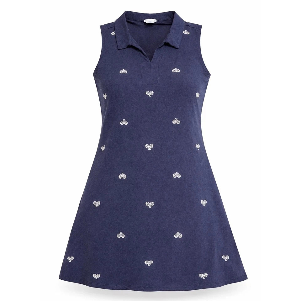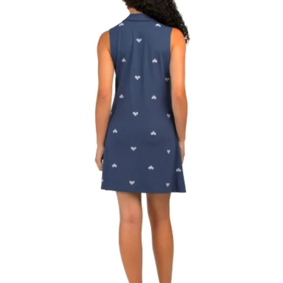 NWT Ladies Sigrid Olsen Navy Blue White Sleeveless Pickleball Dress - S M L