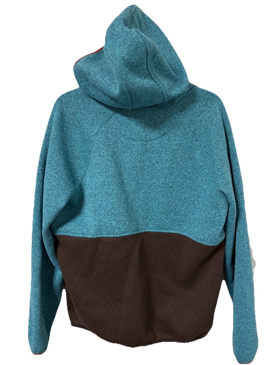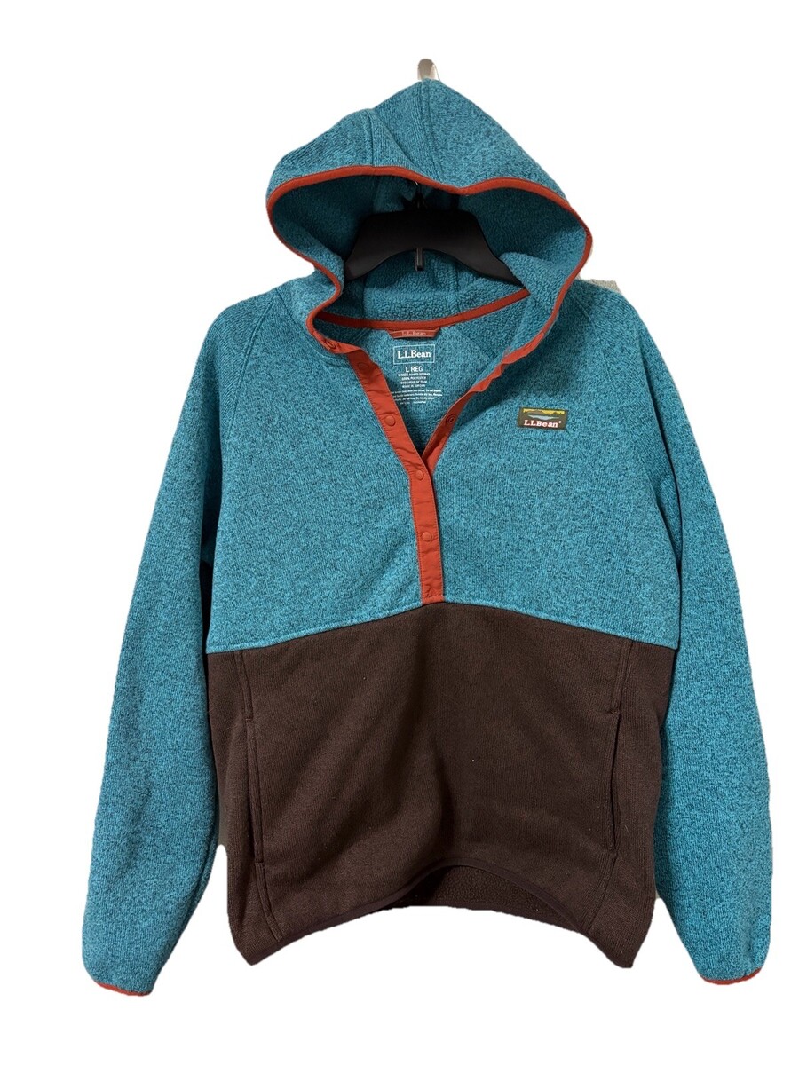 LL Bean Sweater Fleece Hoodie Womens Large Snap Pullover Blue Brown