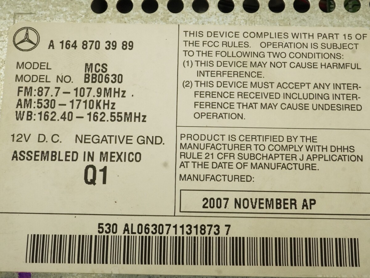 2007-2009 MERCEDES GL450 X164 AM FM AUDIO RADIO RECEIVER PLAYER NAVIGATION