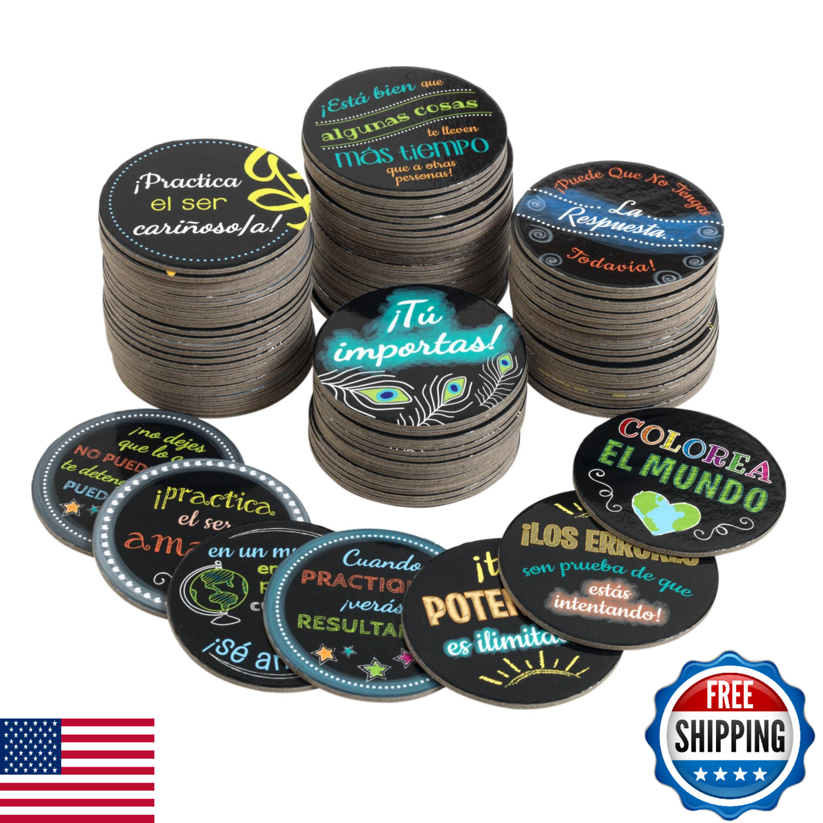 Spanish Positive Affirmation Chips for Kids - 100 Pc, 50 Unique Messages