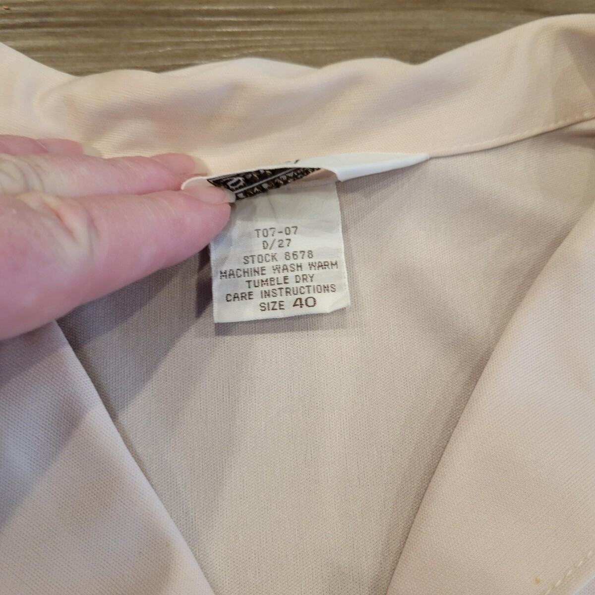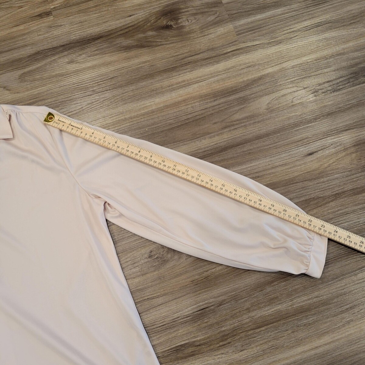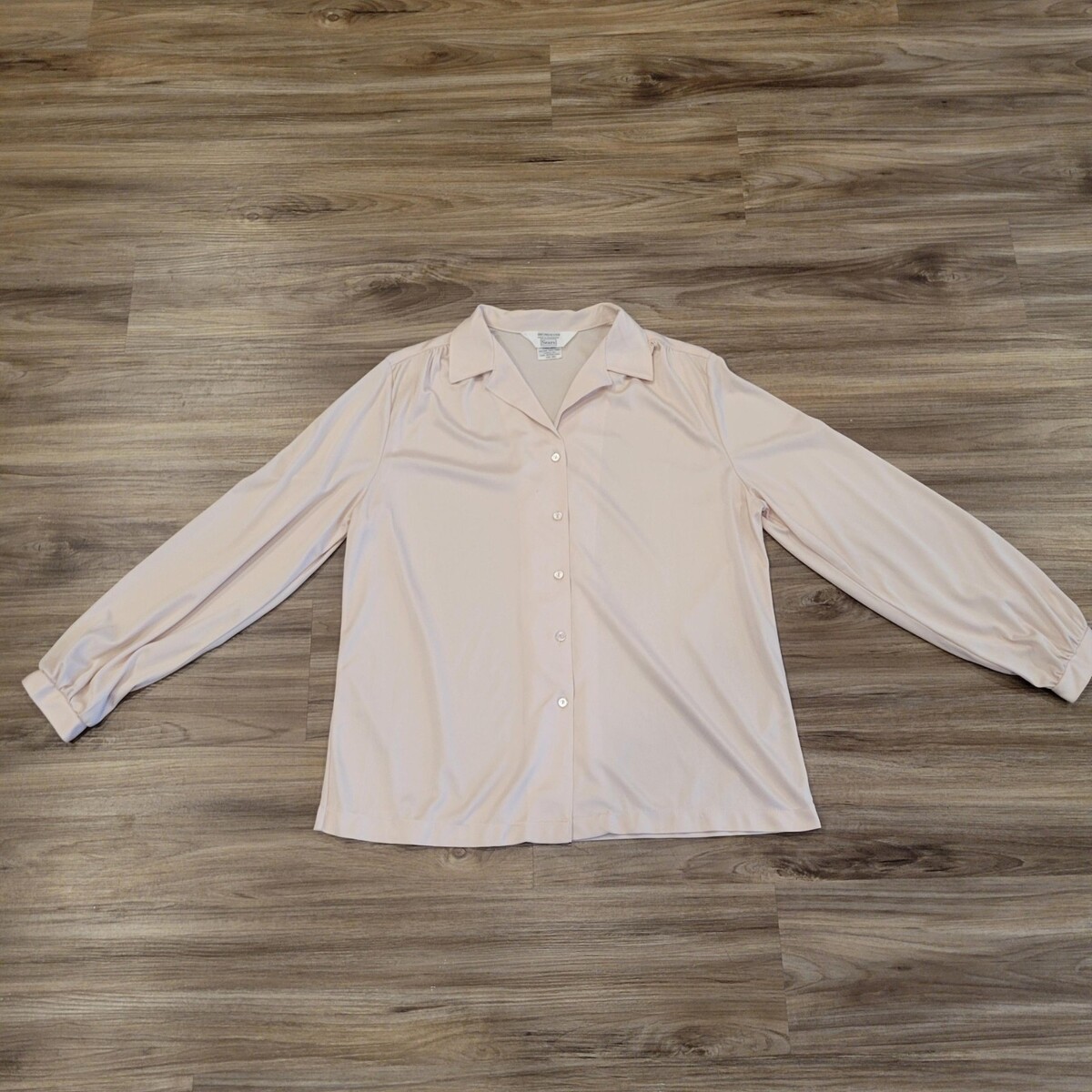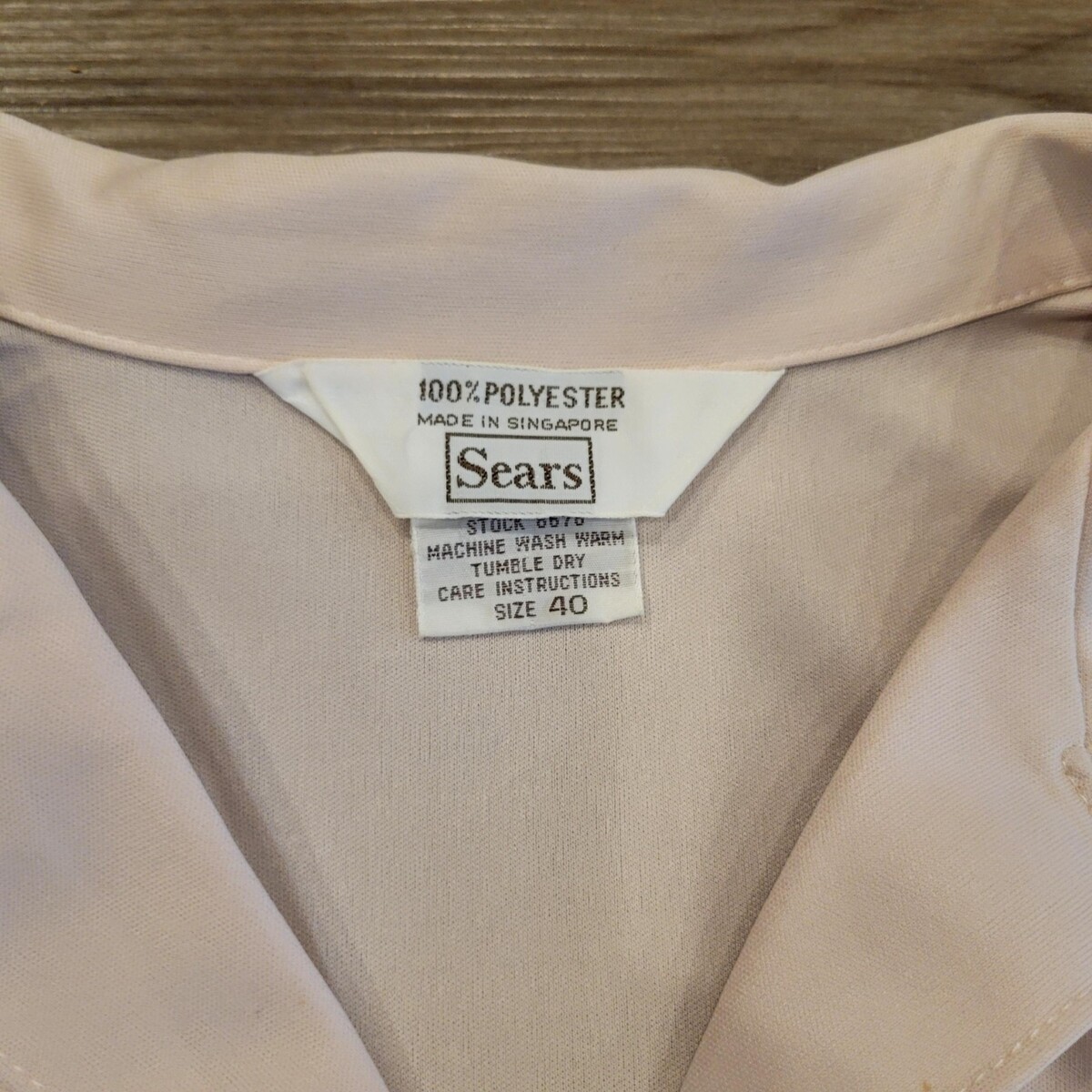 VTG Sears Blouse Top Womens 40 Long Sleeve Button Up Cream Beige Polyester 70s