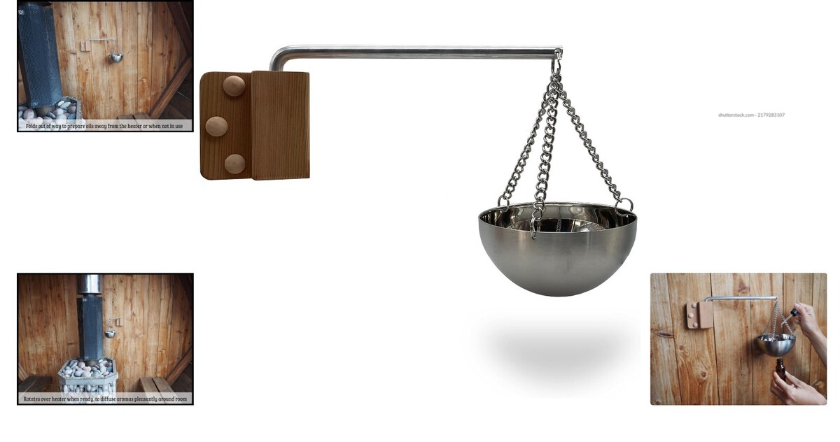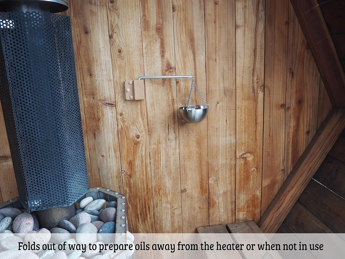 Convenient Swinging Arm: Easily stow the bowl away or swing it over your sauna rocks to control the intensity of your scent.