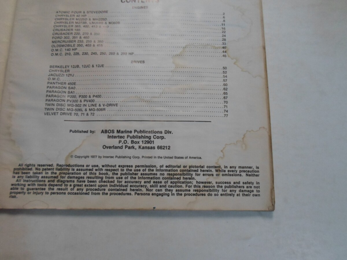 1978 abos Inboard Engines & Drives Service Repair Shop Manual WATER DAMAGED OEM
