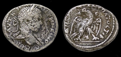 Reverse: ?HMA?X E? ??ATOC TOB, Eagle standing to the right, wings spread, head left and tail left, wreath in beak, ?-E either side of head; star between legs.