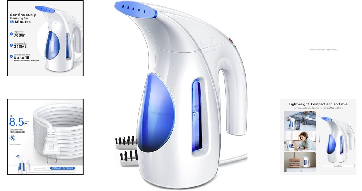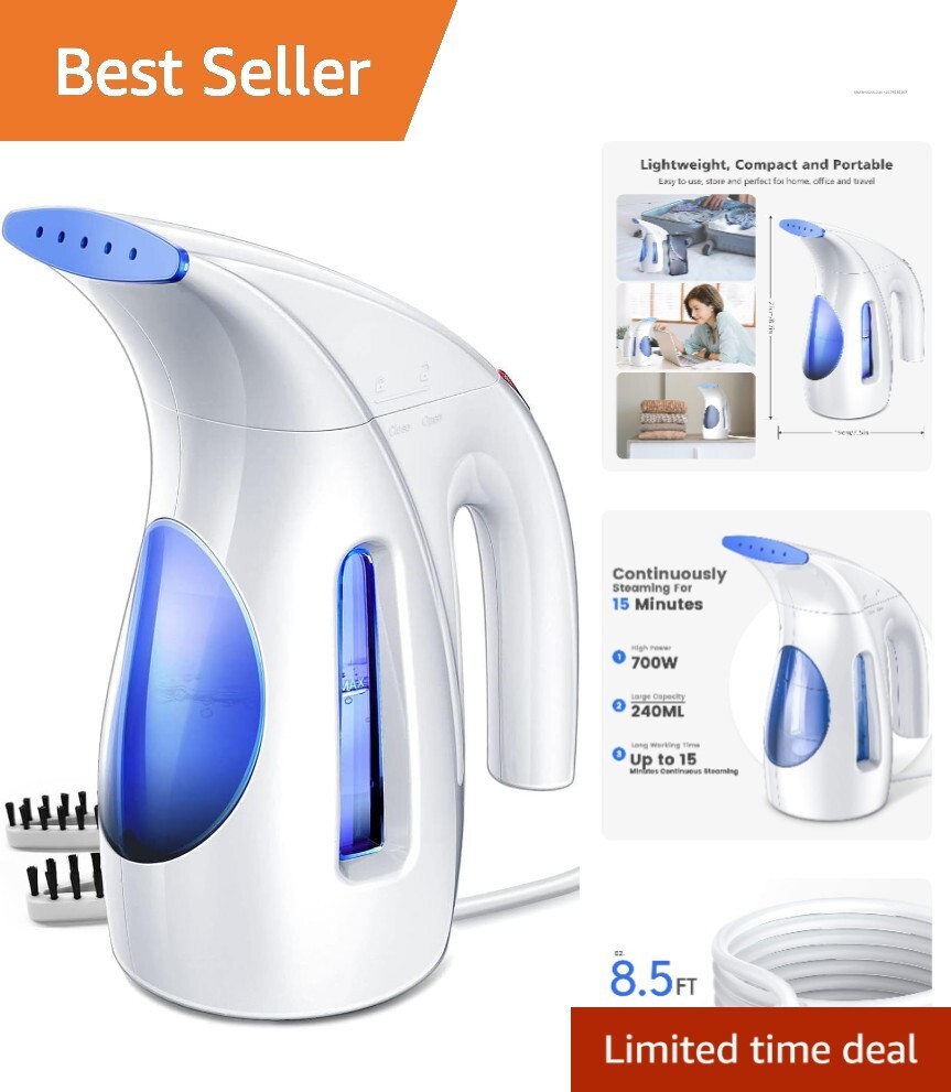 Lightweight 240ml Handheld Clothing Steamer - 700W, Blue, Ideal for All Fabrics