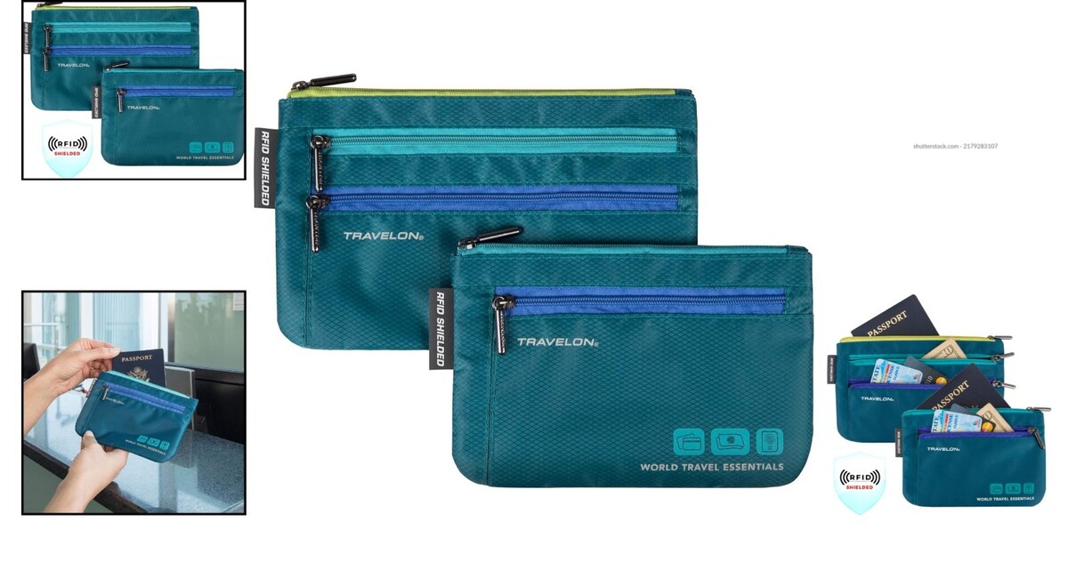 Travel Essentials Set: Stylish 2 RFID Shielded Currency & Passport Organizers