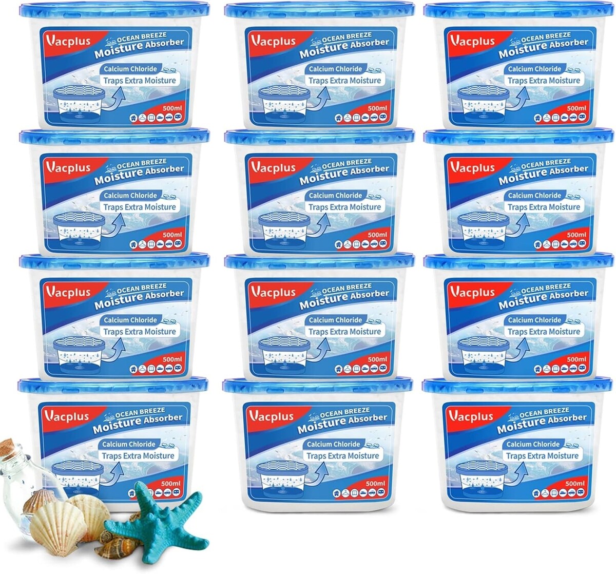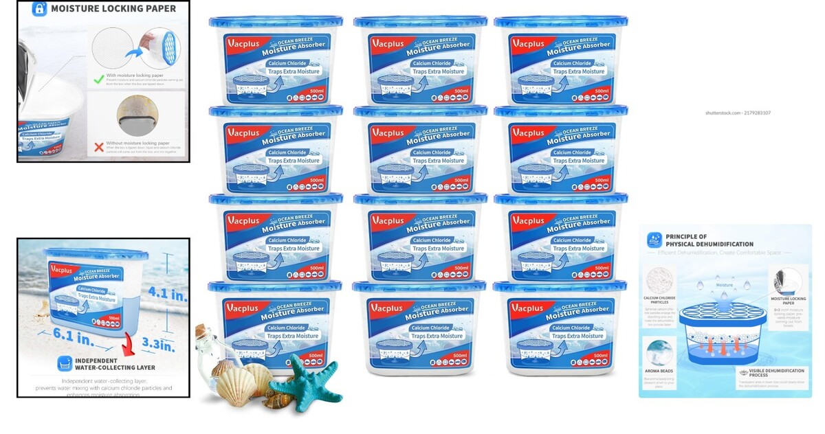Ocean Breeze Humidity Absorbers - 10.5 Oz Leakproof Pack of 12 for Home Comfort