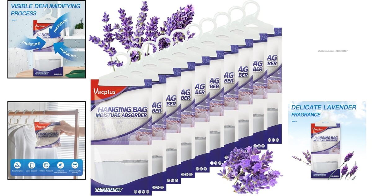 Compact Hanging Dehumidifier Bags with Lavender Scent - Energy-Saving, 10 Count