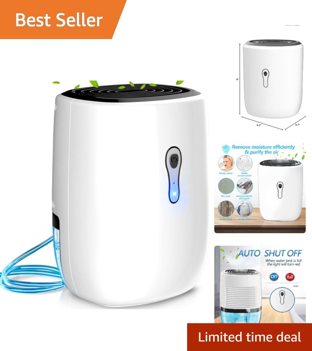 Compact 27oz Dehumidifier for Bathroom, RV Garage - Silent Drainage Solution