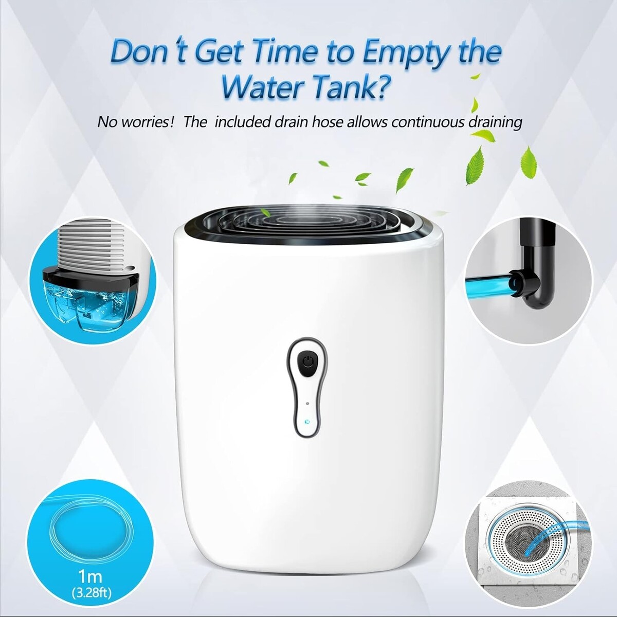 Versatile Drainage Options: Comes equipped with a removable 28oz (800ml) water tank or a 3.28ft drain hose for continuous drainage into a sink or floor drain ? effortless and automatic.