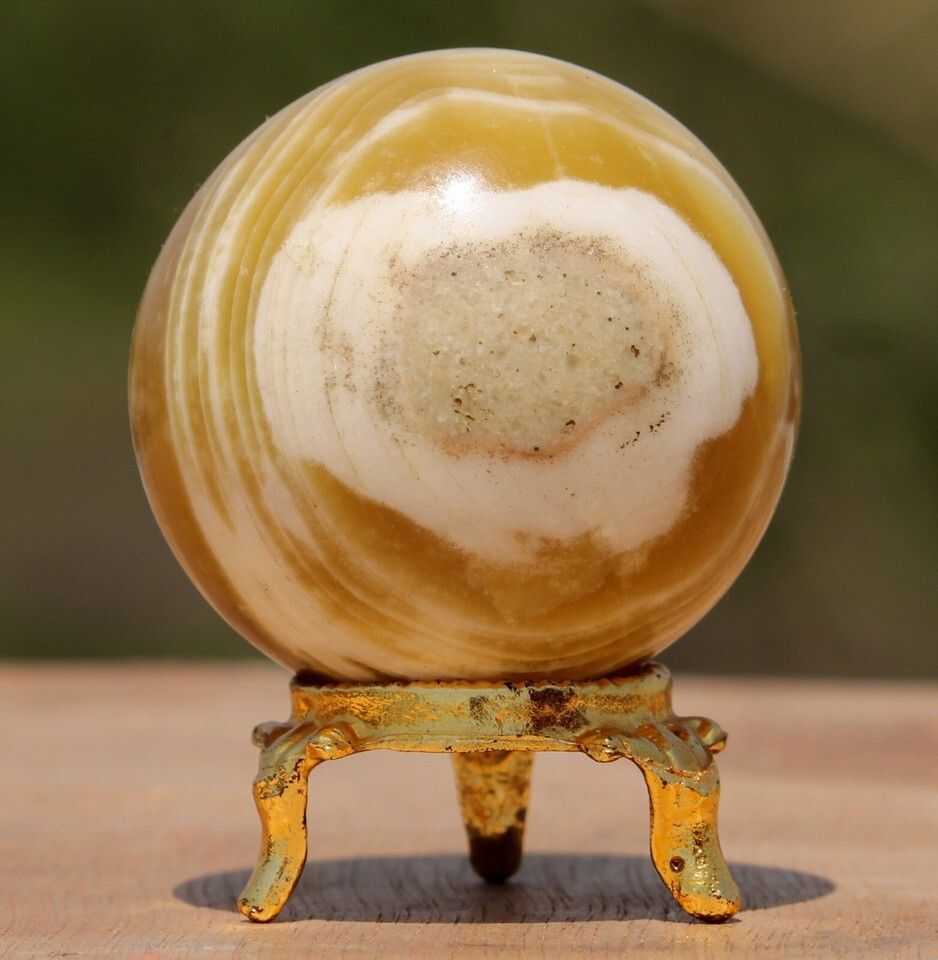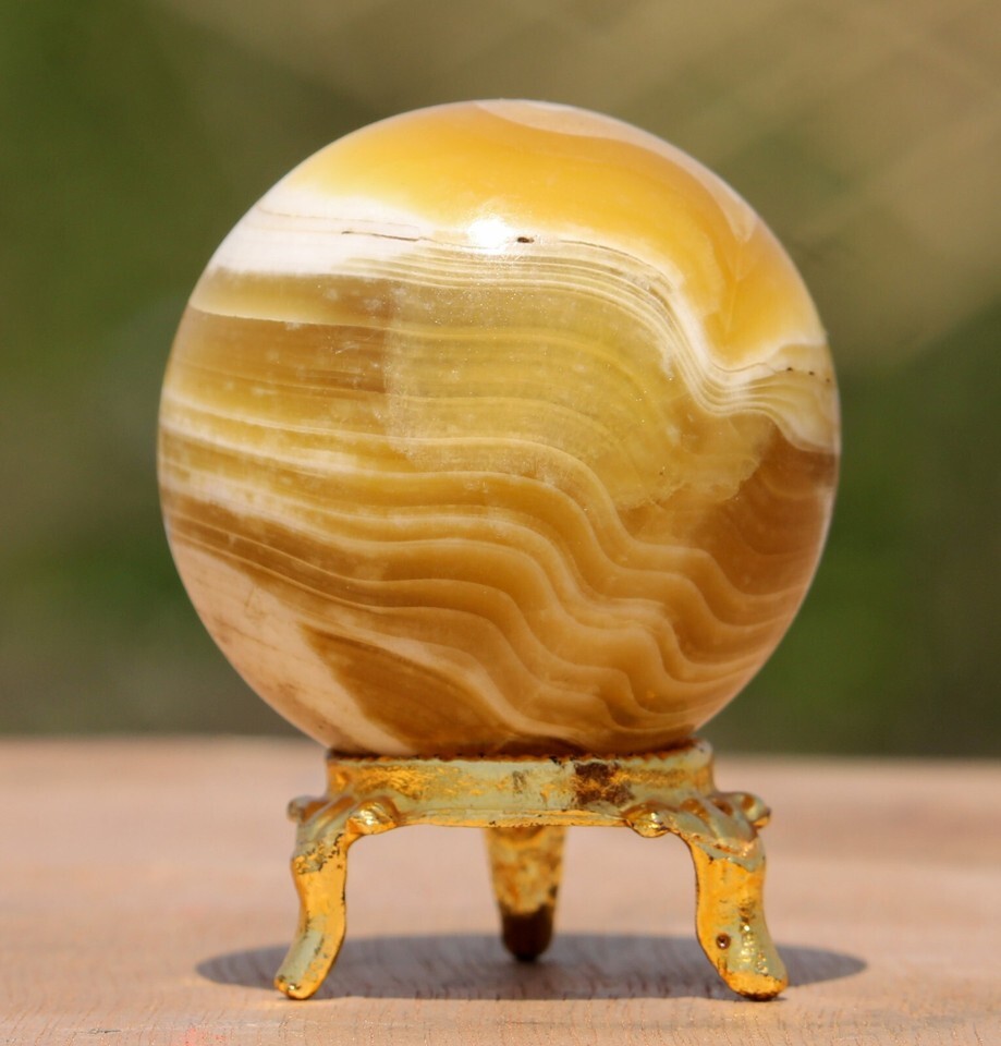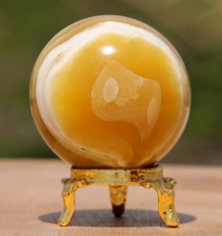 50mm/130g Superb Quality Carved Small Size Yellow Banded Calcite Quartz Healing Crystal Stone Sphere ball with stand.
