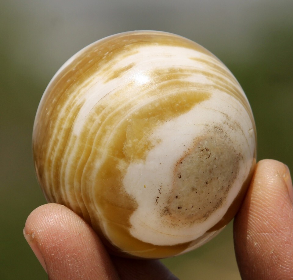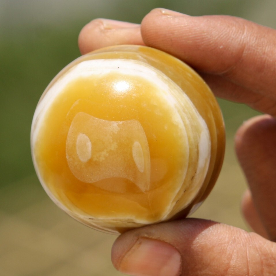130g Yellow Banded Calcite Quartz Crystal Healing Chakra Energy Stone Sphere A1