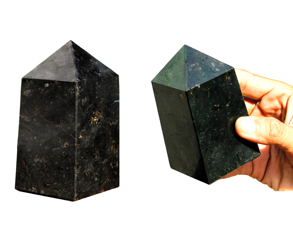 Beautiful 2 x (Tower Pair)100mm Natural Polished Black Tourmaline Crystal Quartz Healing Stone Statue Tower (4 Faceted) For Healing, Fengshui, Reiki, Aura, Meditation, Metaphysical, Decoration and Minerals Specimen.