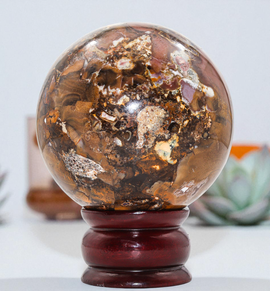 Brown COBRA JASPER Crystal Sphere Healing Metaphysical Stone Decor Gift 95mm
