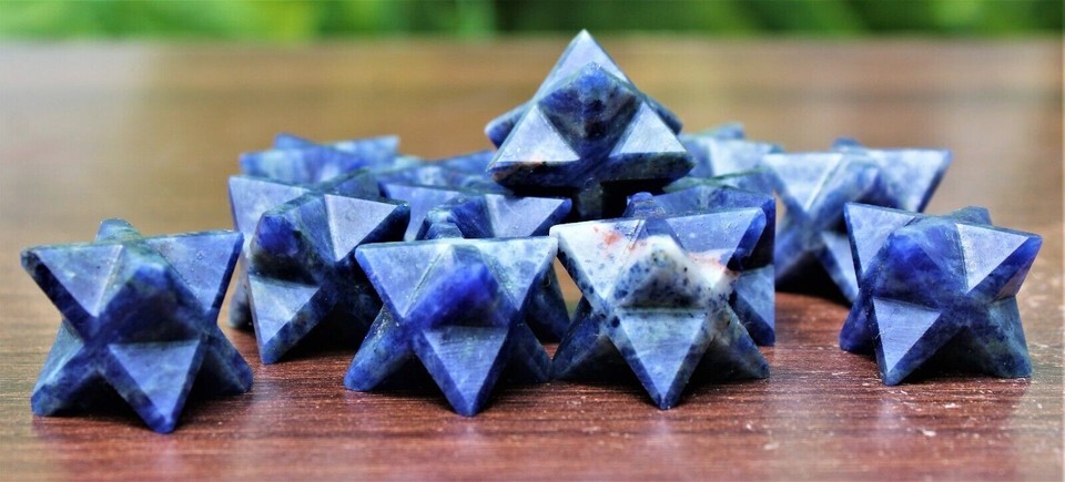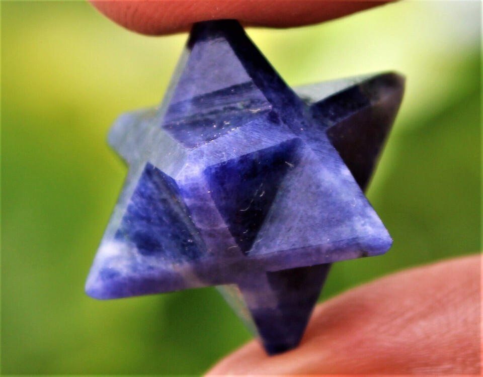 Beautiful One Mini Pocket/Travel Size Natural Polished Blue Sodalite Crystal Healing Stone 8 Points Merkaba Star Tetrahedrone For Healing, Fengshui, Reiki, Aura, Meditation, Metaphysical, Decoration and Minerals Specimen.