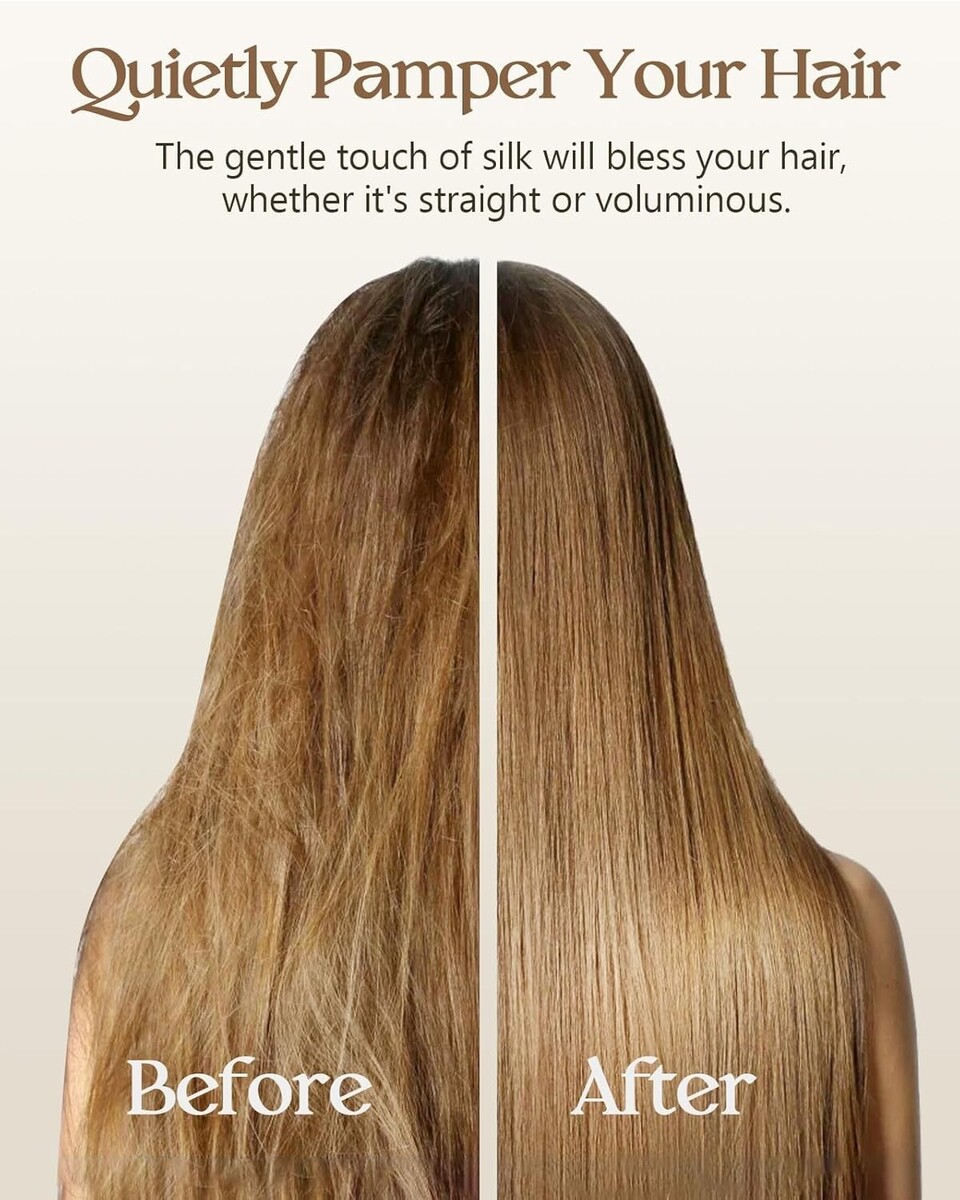 Good for Hair and Skin: Revel in the beauty benefits of silk! This natural fiber reduces curly hair damage while protecting your styling. It?s gentle on the skin, aiding in wrinkle prevention and promoting a youthful glow.