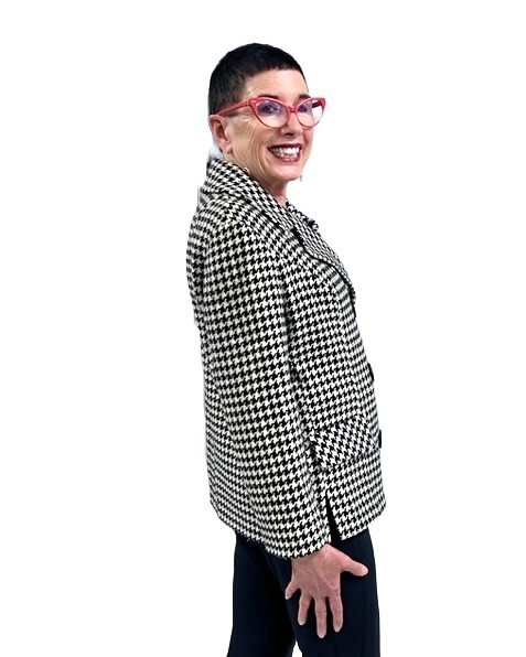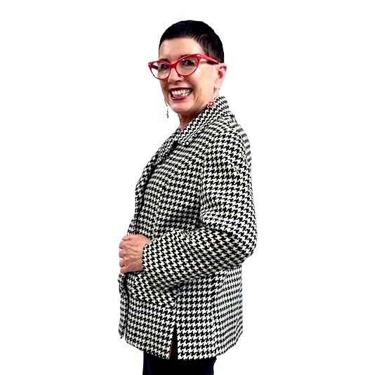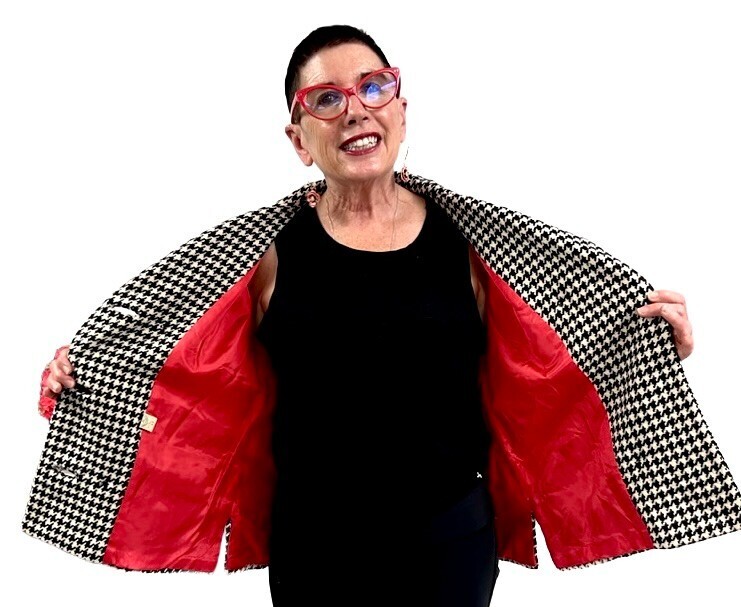 Houndstooth tailoring surged in popularity during the 1960s mod era, embraced by designers from London to Paris. The combination of bold pattern with a surprise pop of red lining reflects the fashion-forward elegance of the decade. Perfect for Retro Glam collectors, Mad Men?era fashion enthusiasts, or film/theater costume buyers.