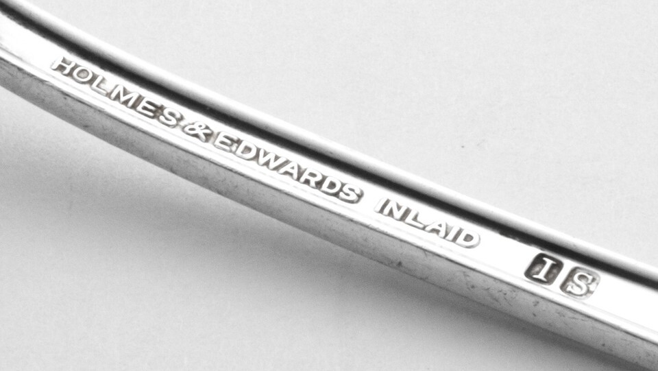 PIECE HAS A STAMPED HALLMARK: Holmes Edwards Inlaid Silver IS ? Pattern looks like a single rose on a stem. Very cool.