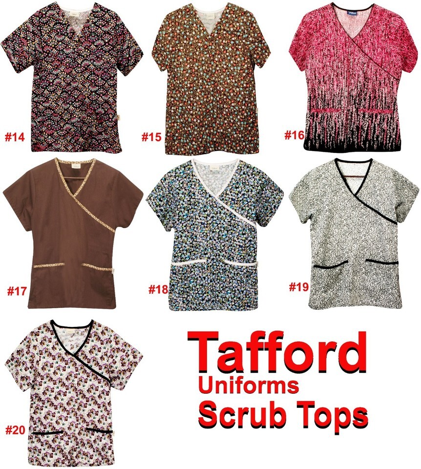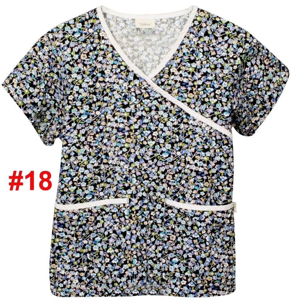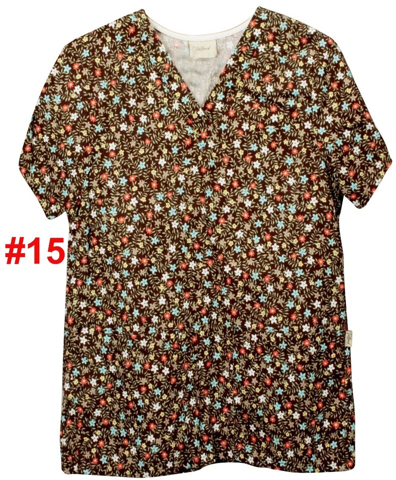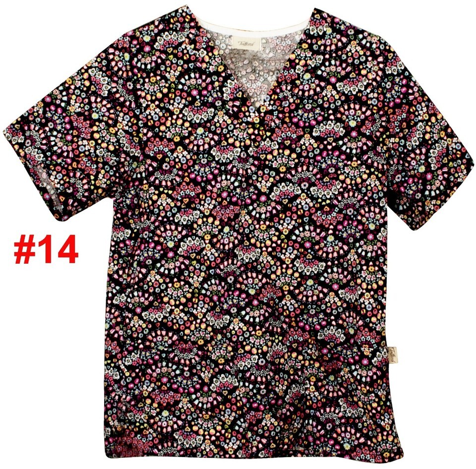$5 TRAFFORD SCRUB TOP SMALL & XSM PATTERN SOLID 2 POCKET V-NECK WOMEN