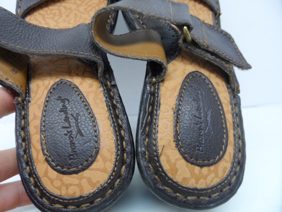 Brown's Landing Women's Allyson Leather Strap Open Toe Sandal Brown Size 6M