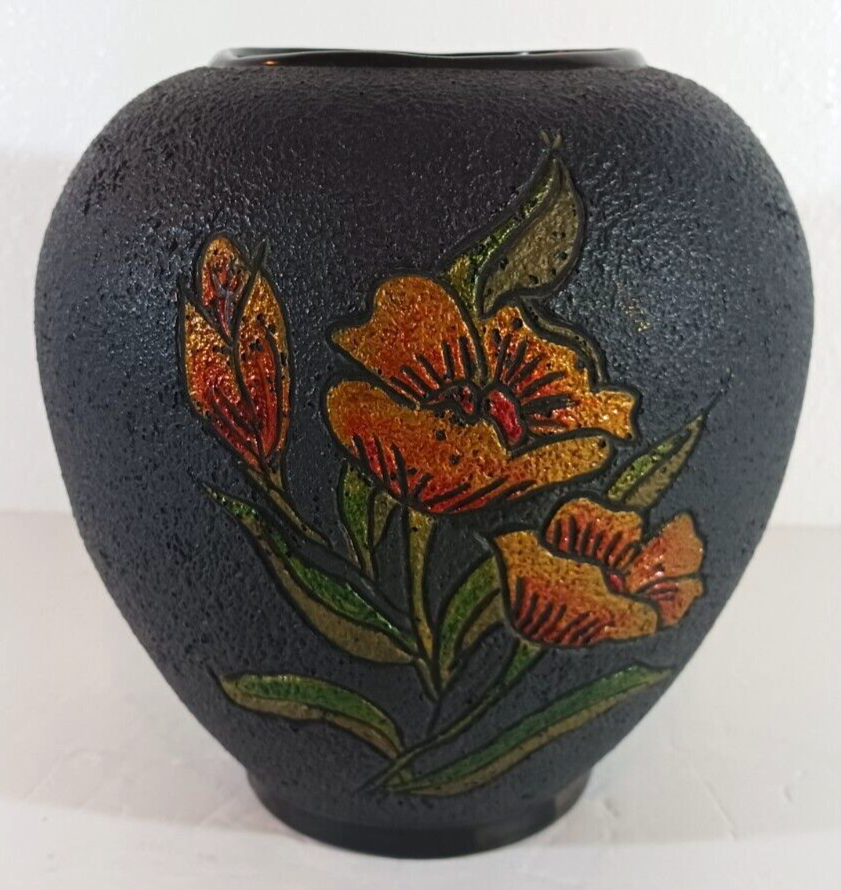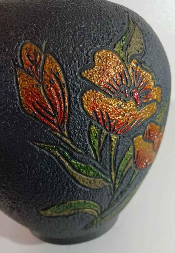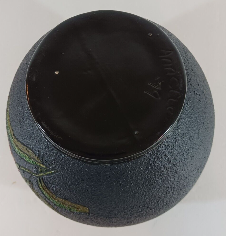 Large Stunning HAND-THROWN CERAMIC VASE STUDIO POTTERY Signed Annette '79 Black