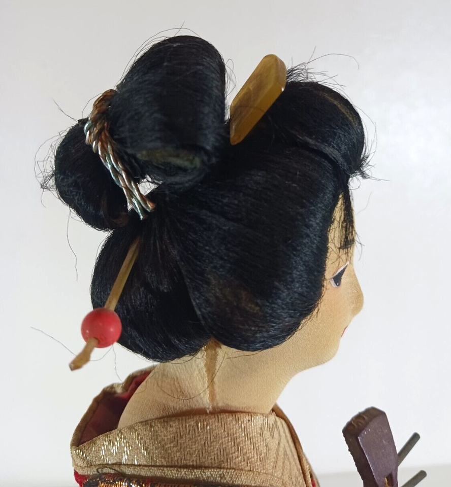 Vintage Nishi GEISHA DOLL with SAMISEN INSTRUMENT Kimono on Stand 1950-1960