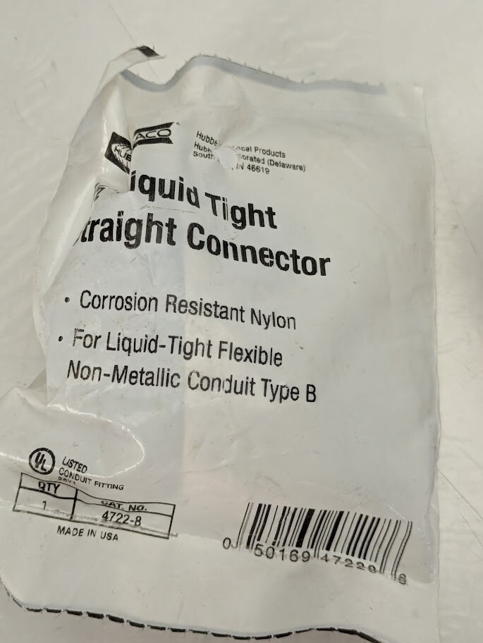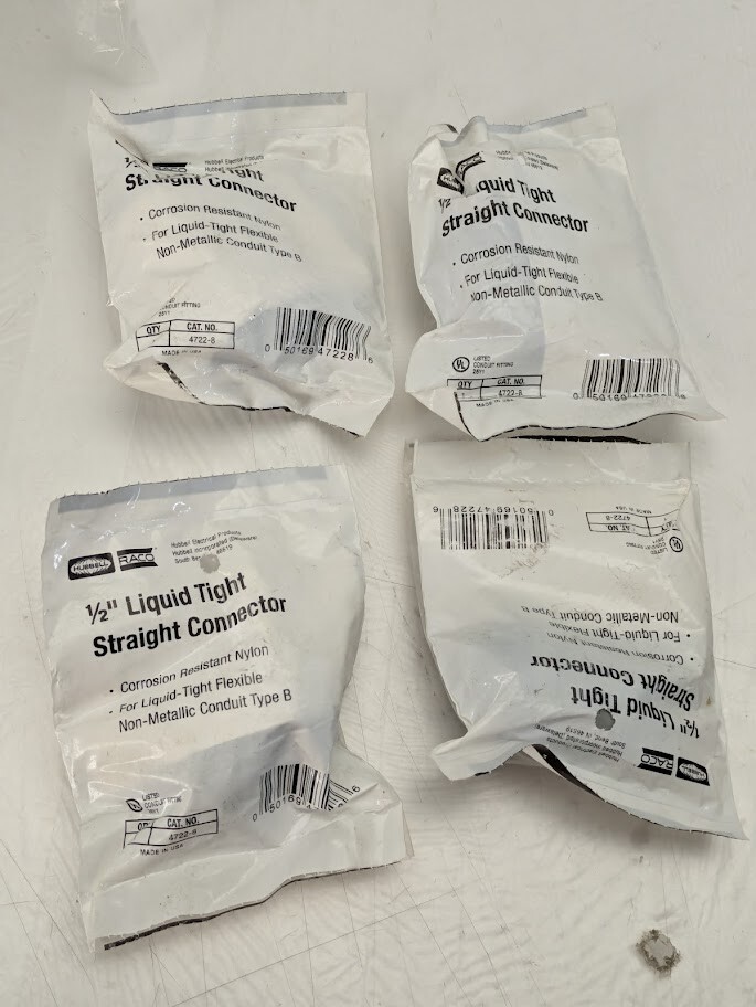 Pack of 4 Hubbell Raco 1/2" Type B Flex Liquid-Tight Straight Connector 4722-8