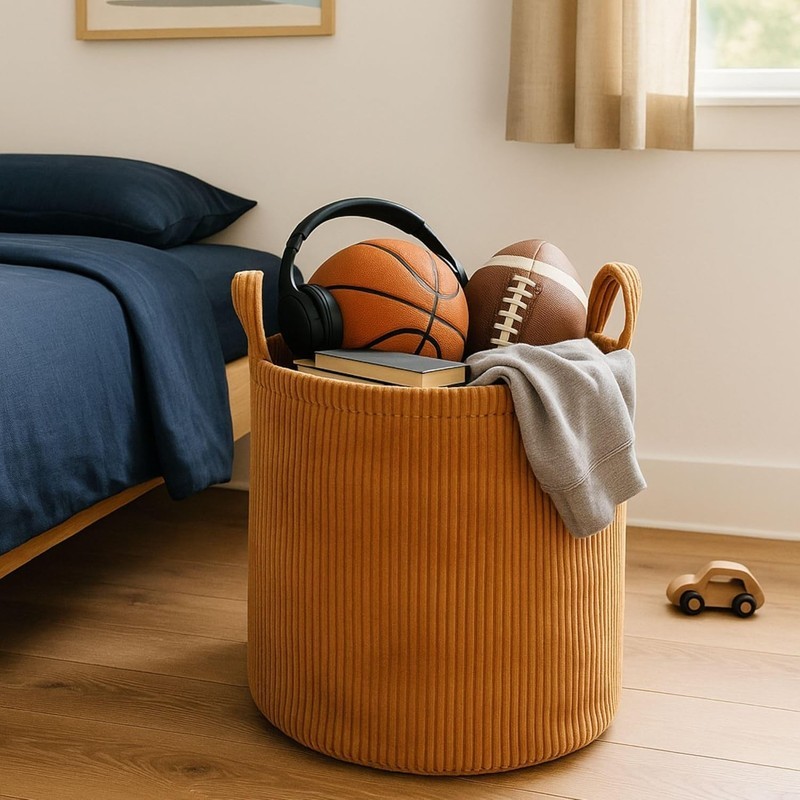 Durable Build: Designed with durable handles and Corduroy fabric, this clothes basket stands tall. Use it as a baby laundry basket, baby hamper, a basket for clothes, or a practical option for baskets for organizing in bedrooms or nurseries.