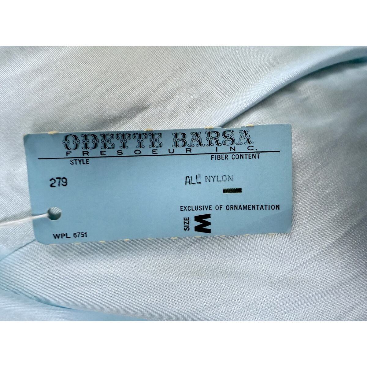 Lovely Vintage Odette Barsa Blue Nightgown made from soft slinky Nylon, beautifully accented with Lace Trim and Collar?it's brand new with tags! The marked size is M, and when laid flat, here are the measurements: Pit to pit measures 44 inches, the waist is 54 inches, and the hip is free, allowing for comfortable wear. The length from the shoulder to the hem is 42 inches. It's in excellent new condition with no holes, snags, stains, or unpleasant smells, making it a perfect addition to your collection!