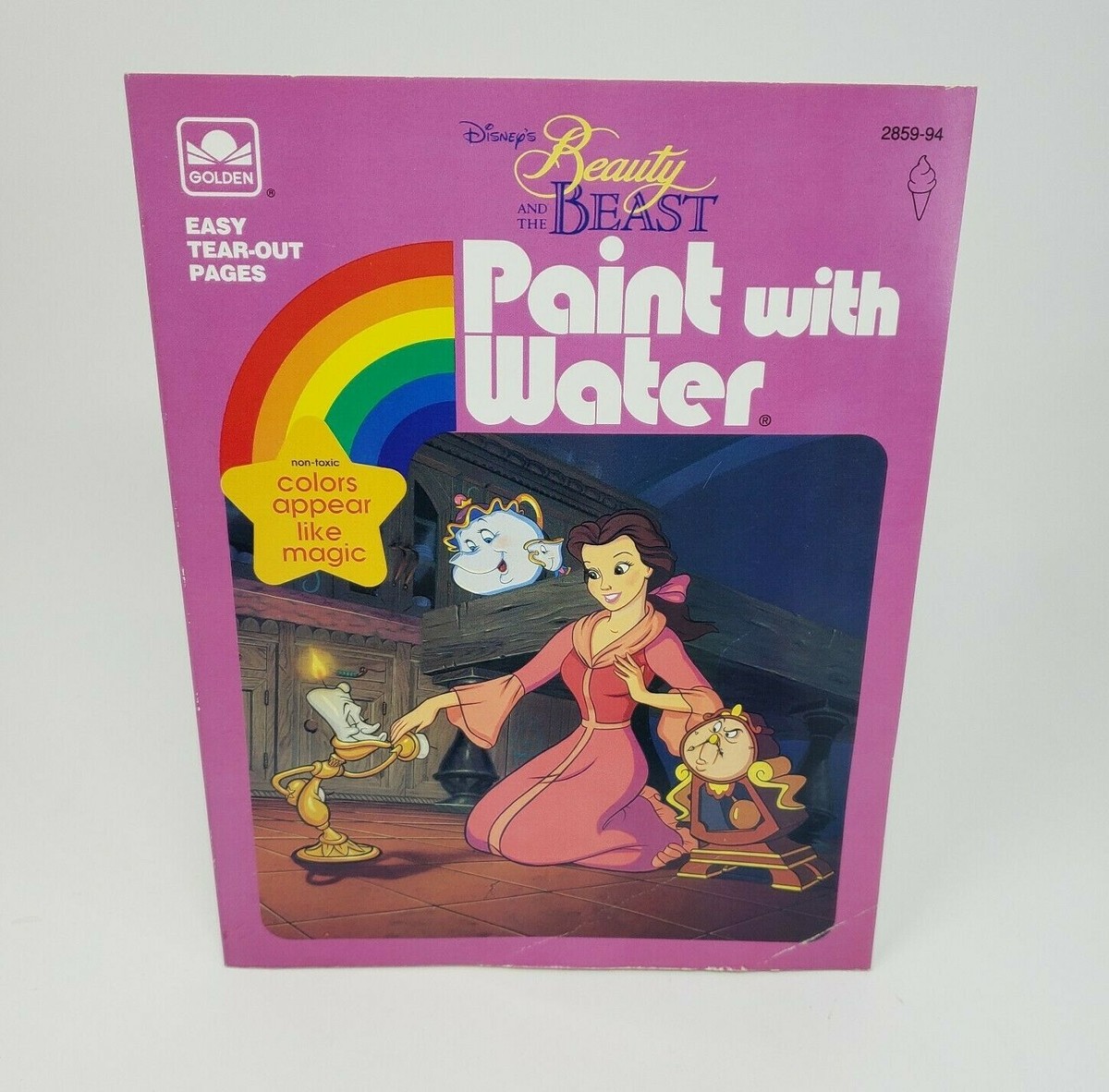 NEW VINTAGE DISNEY BEAUTY AND THE BEAST PAINT W WATER COLORING BOOK NOS GOLDEN