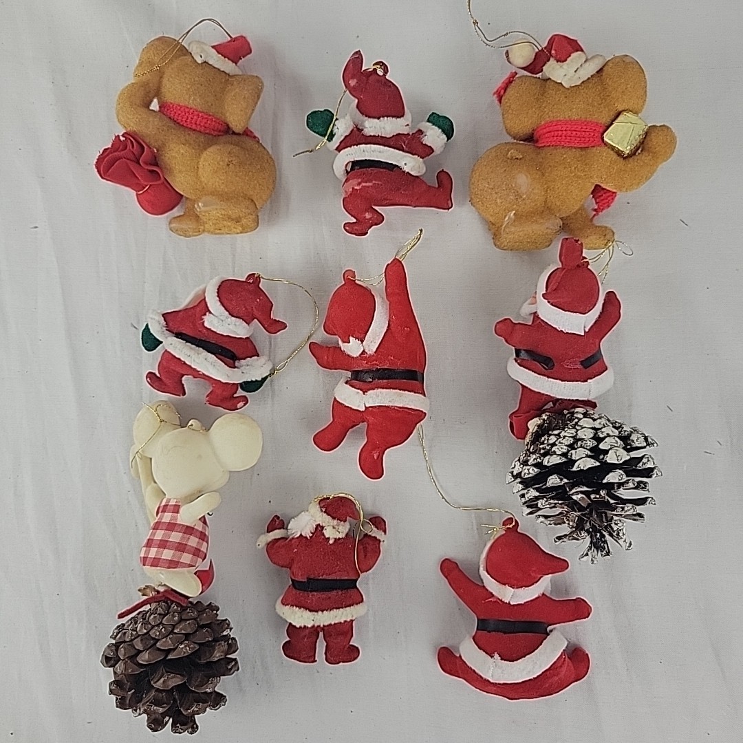 Velvet XMAS Ornaments Granny Core Flocked Santa Bear Mouse Tree Pinecone EVC