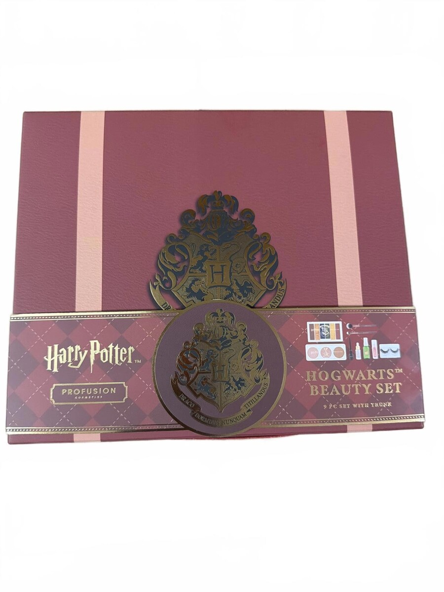 Official Harry Potter Hogwarts Beauty Set by Profusion. This set includes various beauty items inspired by the Hogwarts theme, perfect for fans and collectors. Comes in a beautifully designed box featuring the Hogwarts crest. Ideal for gifting or personal use.