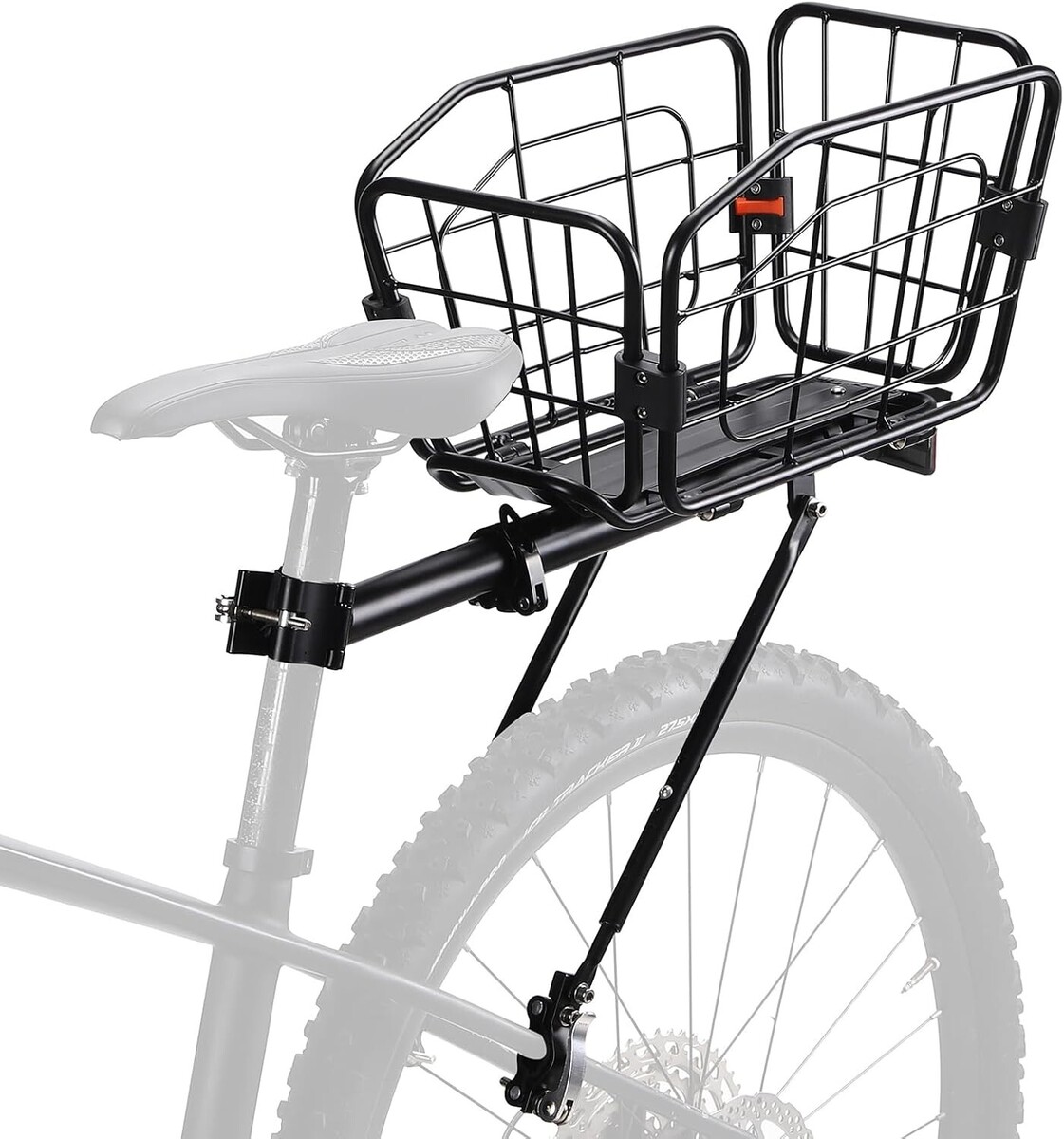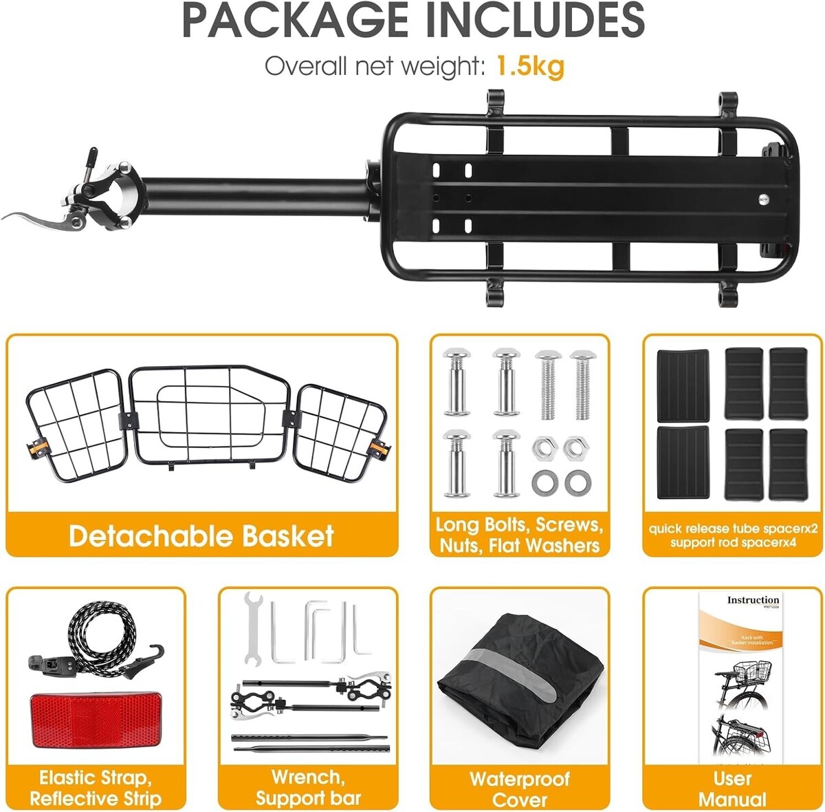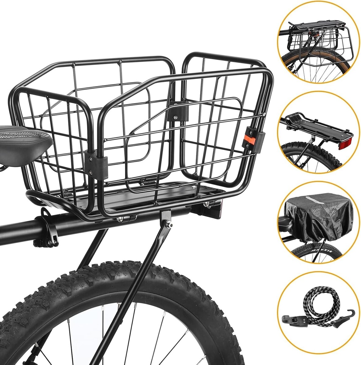 ??Multifunctional detachable?Our bike basket rear upgrade your Ride to the next level and can meet most needs for daily travel. Detachable design Rear Rack Brasket for go to school, shopping, pet baskets, grocery shopping, picnic, and outdoor baskets (That?s about 18 liters of capacity).Whether you?re popping over to the shops or are on a short-distance tour, this bike rack will be your best choice. It is your perfect companion on the bicycle