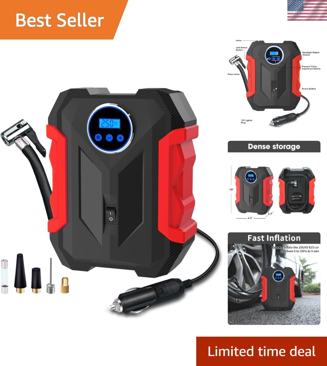 Digital Air Compressor for Car Auto Pump Portable Tire Inflator with LED Light DC 12V, Red