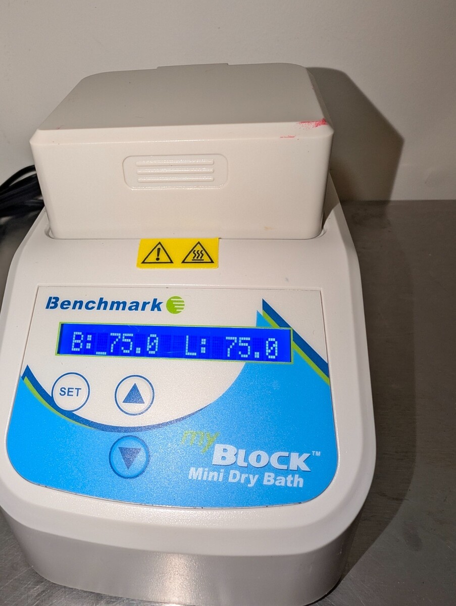 This Benchmark BSH200-HL myBlock Mini Dry Bath is in excellent, like new condition, has been tested and is guaranteed to be fully functional. This item came from a local lab that had surplus lightly used equipment. Please feel free to contact us with any questions.