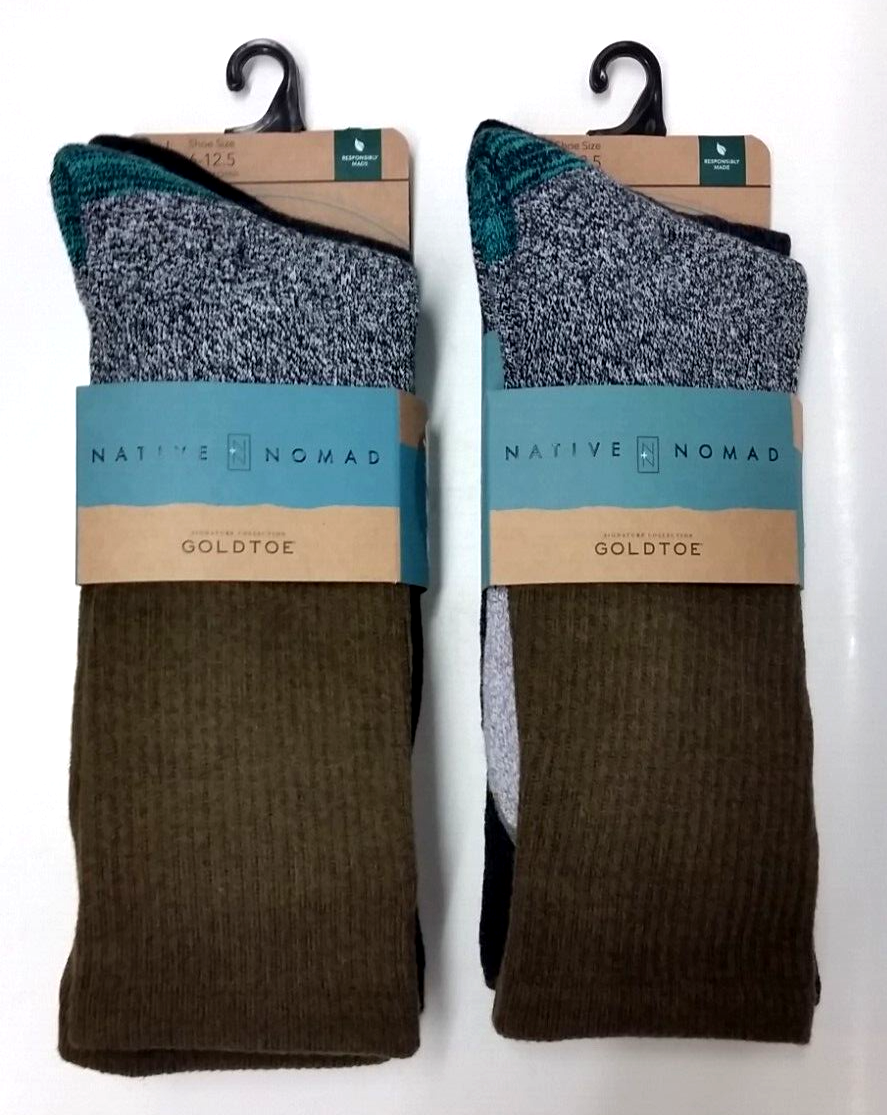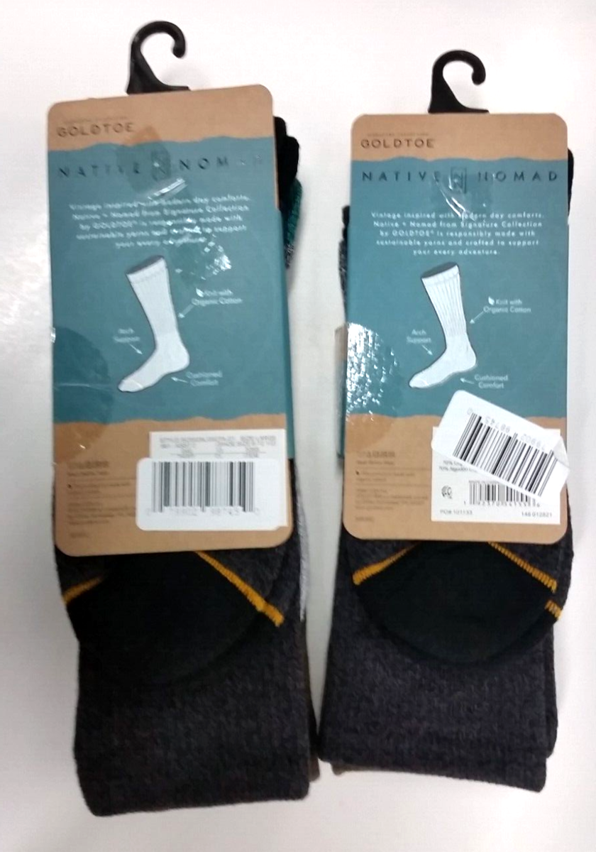 2 Pks = 4 PAIRS GOLDTOE Men's Native Nomad Crew Socks, Knit with ORGANIC Cotton