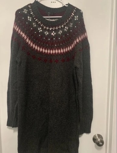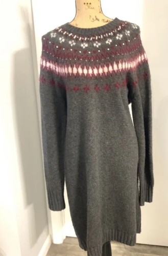 J. Crew Gray Jewel Embellished Fair Isle Cozy Sweater Dress Wool Blend XL New