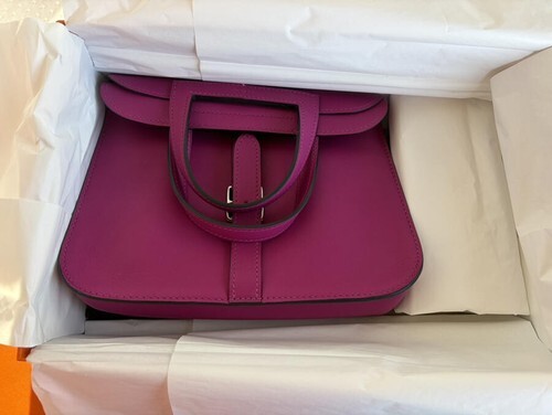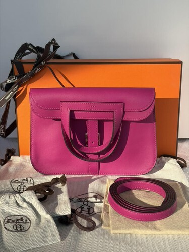 NIB Hermes Rose Poupre Swift 22cm Mini Halzan Clutch/Messenger/Shoulder