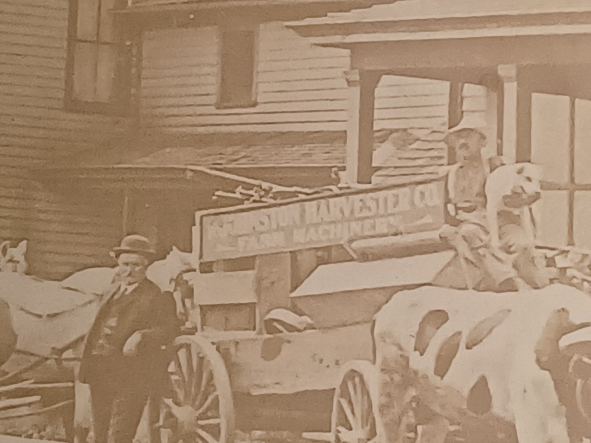 Vtg Farmersville Station Postcard Horse Wagon Cattle Harvester Advertising