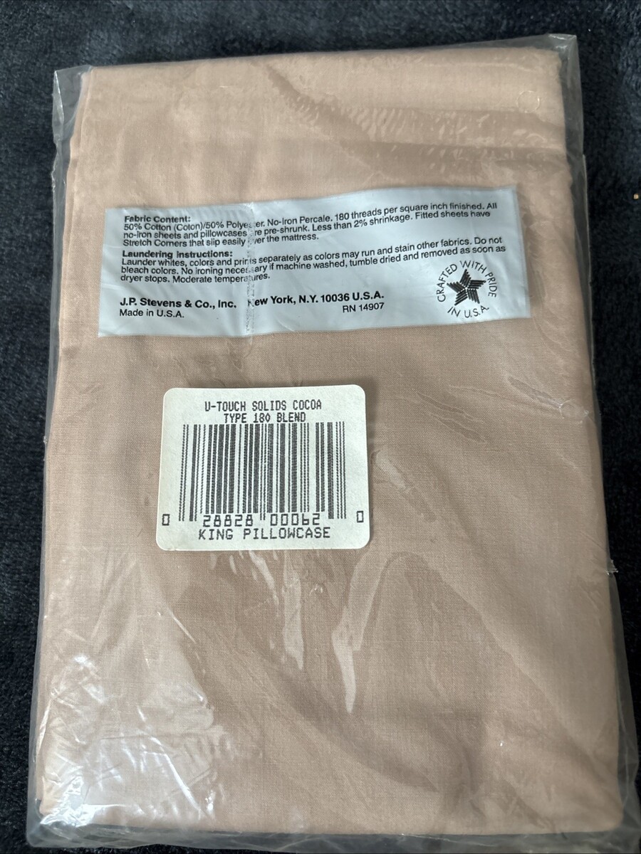 The product is a set of 2 vintage king-size pillowcases by Stevens, featuring a brown color and a rectangular shape. Made from a blend of polyester and cotton, these ultra touch pillowcases are designed in a retro style for a unique addition to any bedroom. The set includes pillowcases with no closure for easy use and comfort. Perfect for collectors or those looking to add a touch of nostalgia to their sleep space.