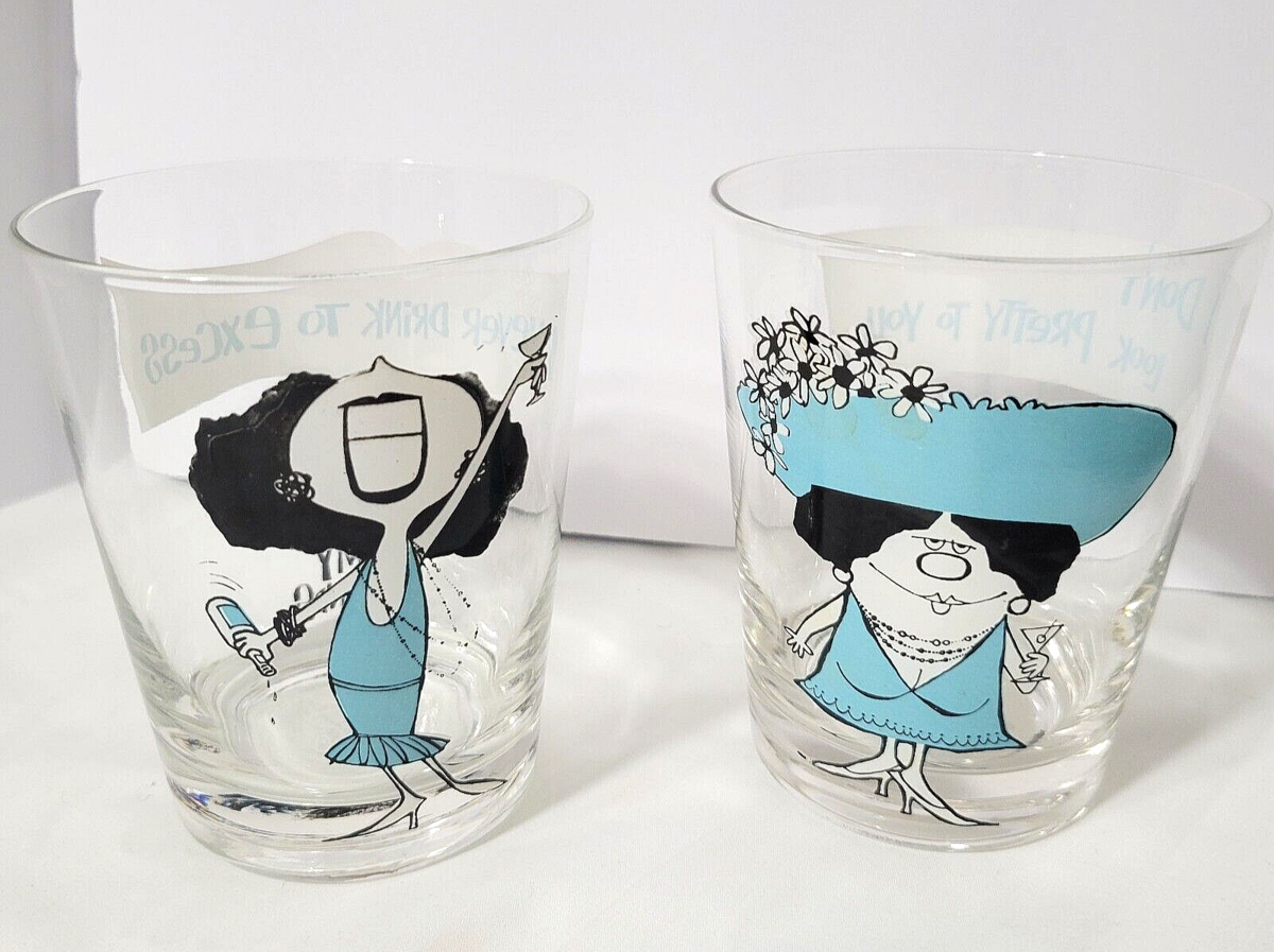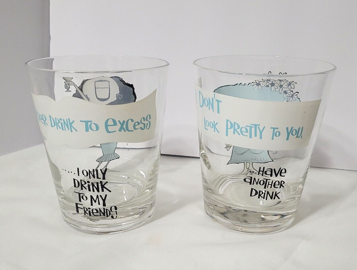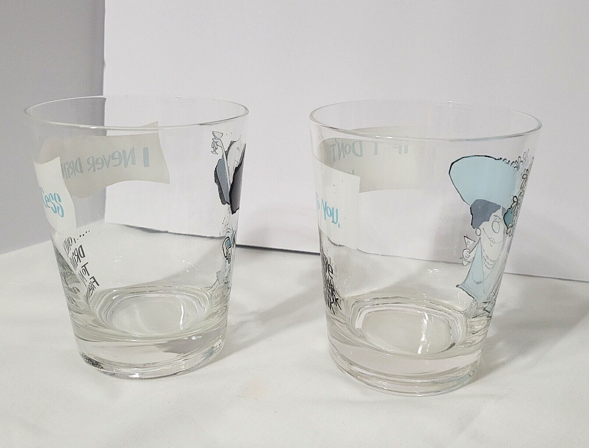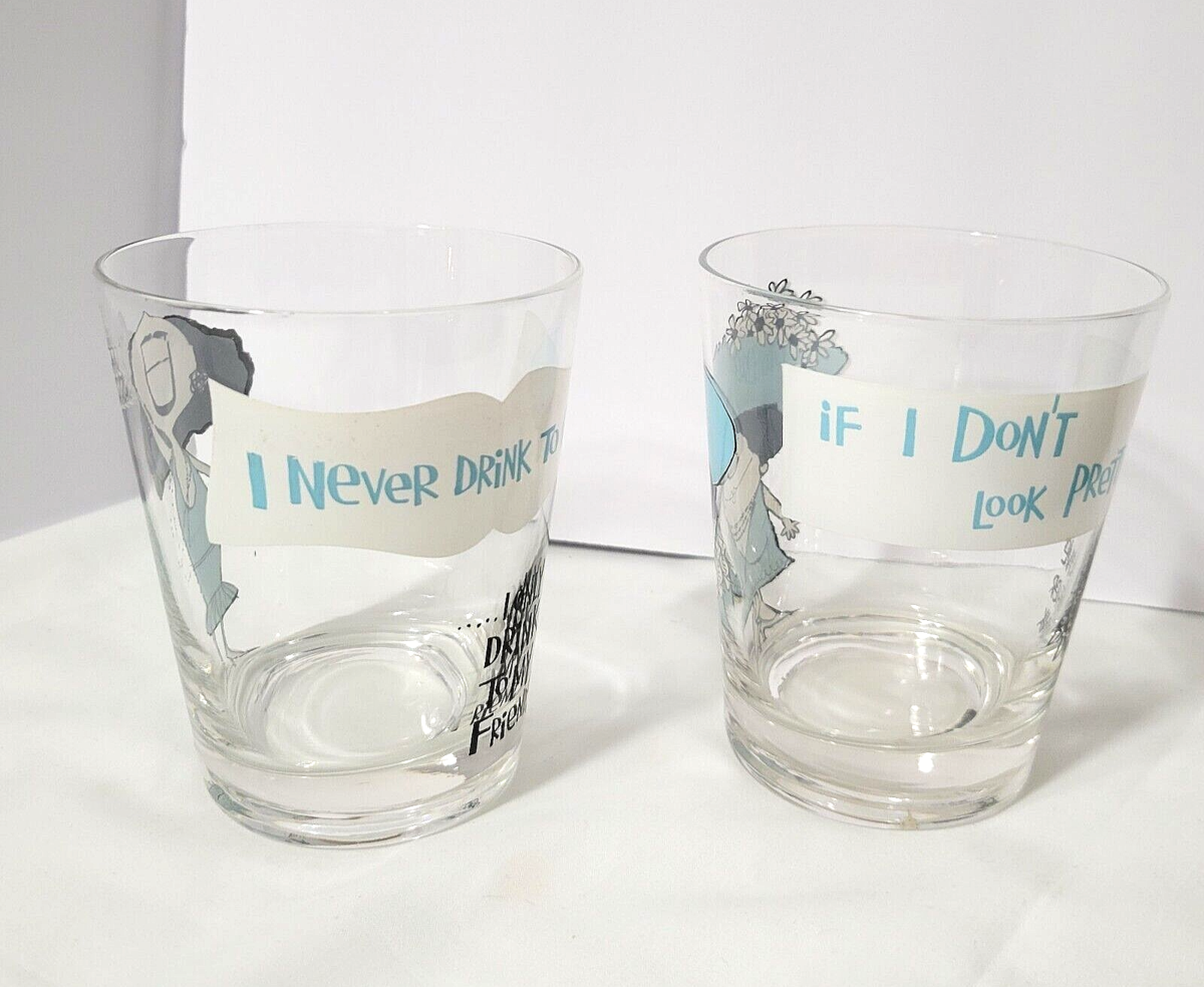 MCM 2 Drink Barware Glasses Aqua Ladies Osbourne Kemper 14 oz Humorous Sayings