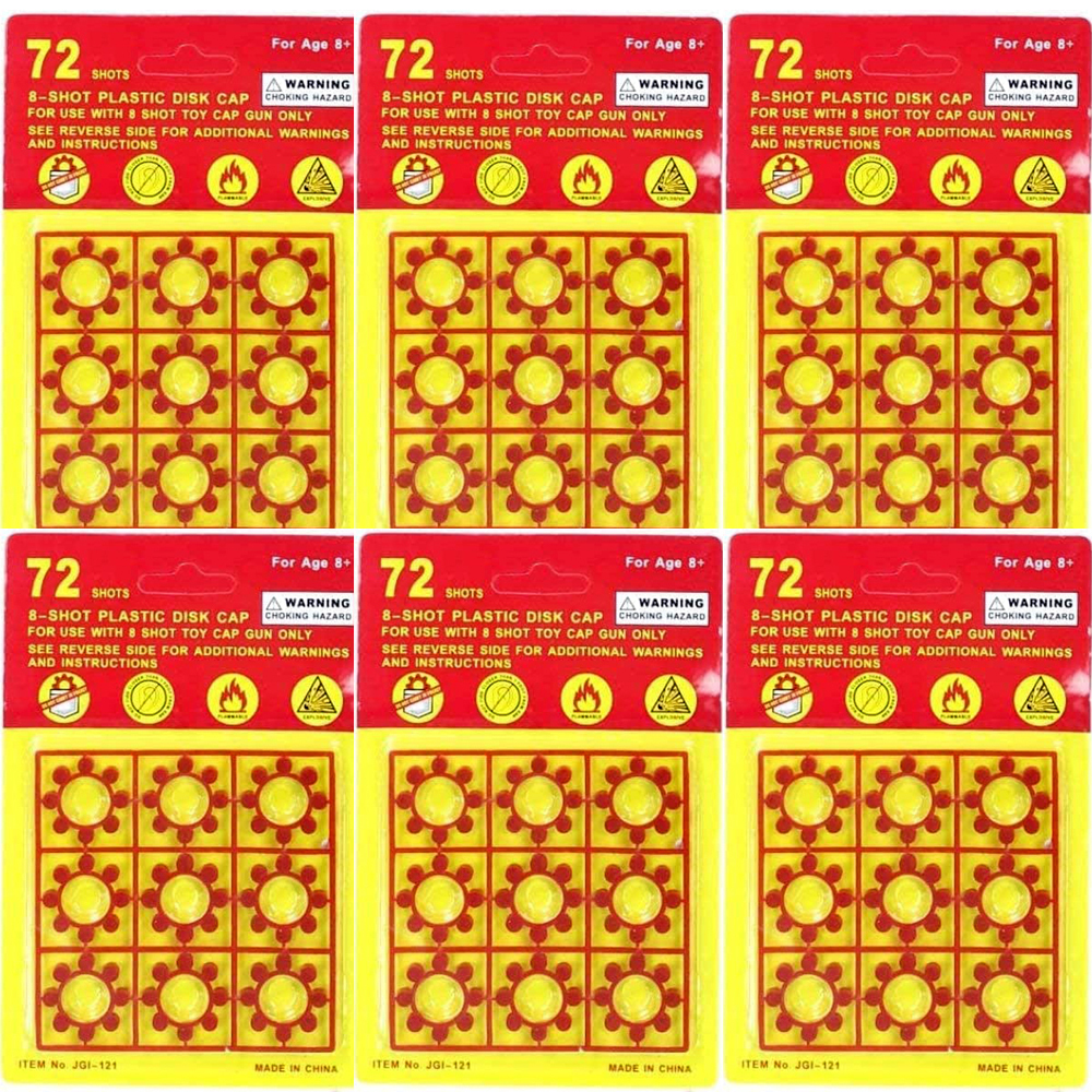 Set of 6 - 8 Shot Ring Caps 72 Shots, Caps for cap gun toy, Cap Guns Refills