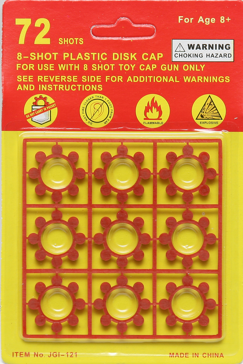 72 shots for our 8 shot Ring Cap Guns. Our loud red ring caps are perfect for your western cap gun! You get 9 red rings with 8 shots on each load for a total of 72 shots. These refills are for the 8 shot ring cap guns. You can also pop these caps apart for use in single shot cap guns and cap bombs.