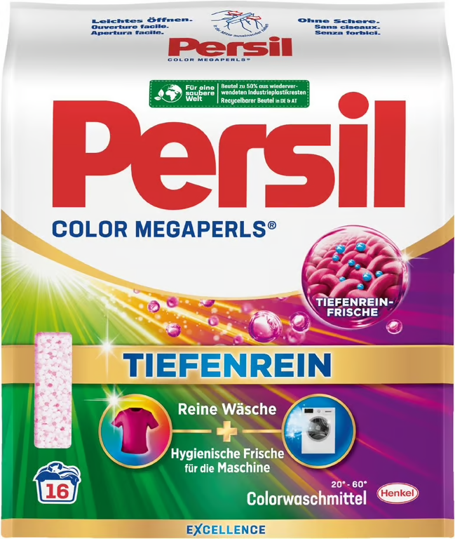 PERSIL's Megaperls Color Excellence Color Laundry Detergent offers effective cleaning even at low temperatures of 20C, thanks to its innovative formula. With this innovative formula, the washing powder not only ensures hygienically clean laundry but also gives your washing machine a fresh touch. For powerful stain removal, the detergent penetrates deep into the fibers and effortlessly removes even the most stubborn stains. It also keeps dark and colored clothes sparkling clean, even after frequent washes. An essential product for anyone who values ??clean, well-maintained laundry.